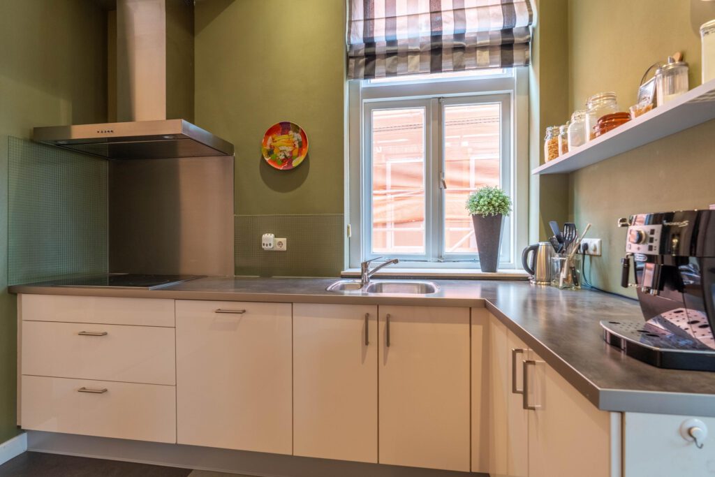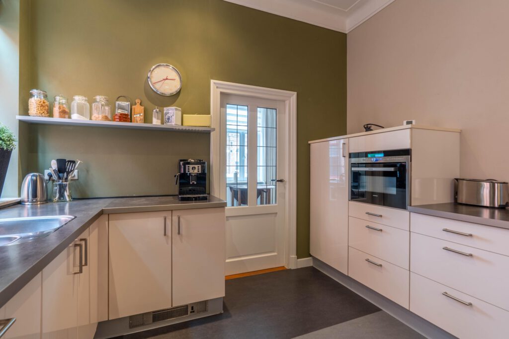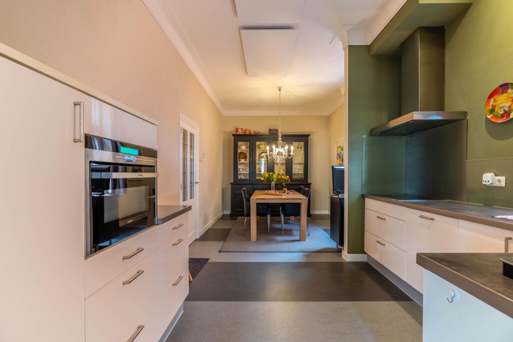 De keuken is ruim opgezet, met volop werkruimte, veel kastruimte en plek voor een grote eettafel. Ideaal voor wie graag kookt of uitgebreid dineert met vrienden. De keuken beschikt over een inductiekookplaat, vaatwasser en oven.