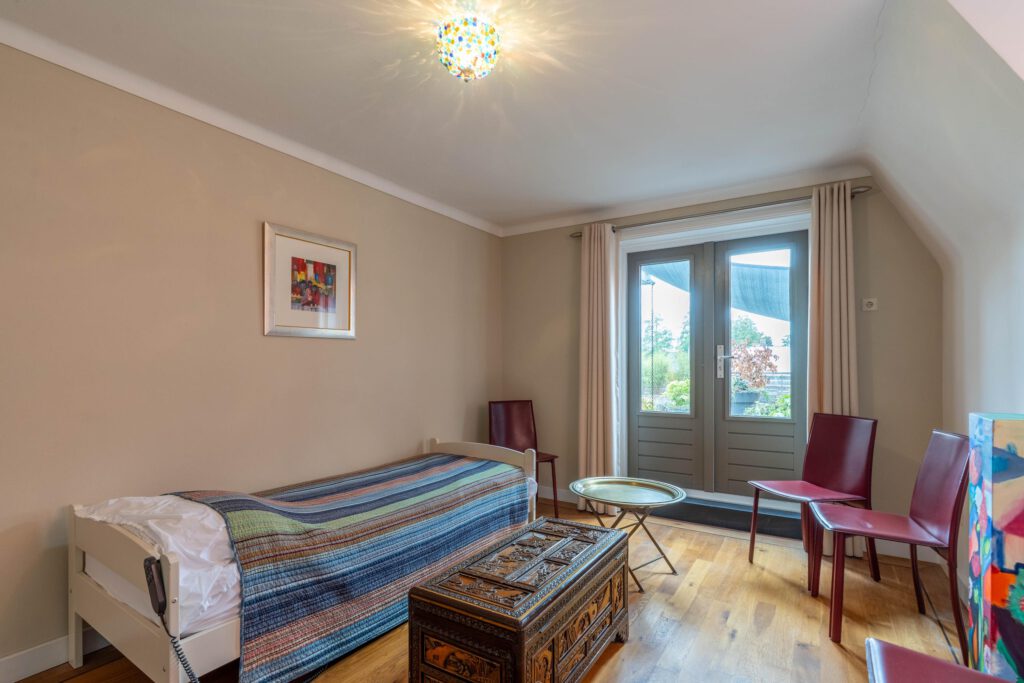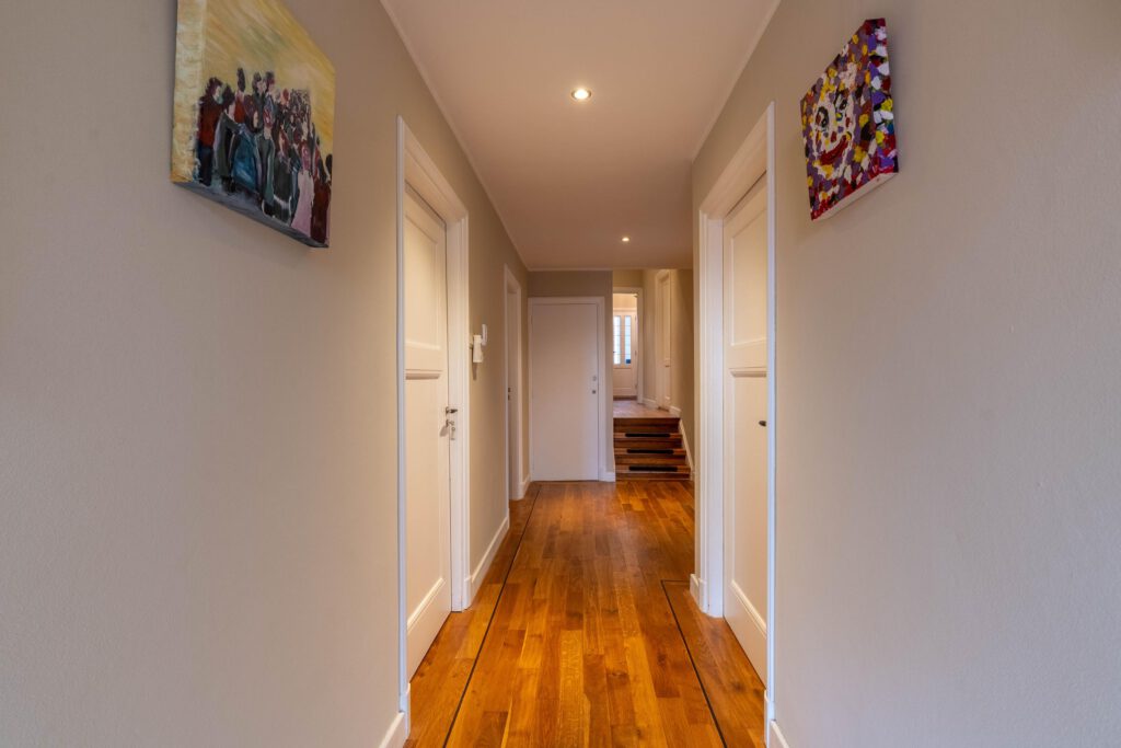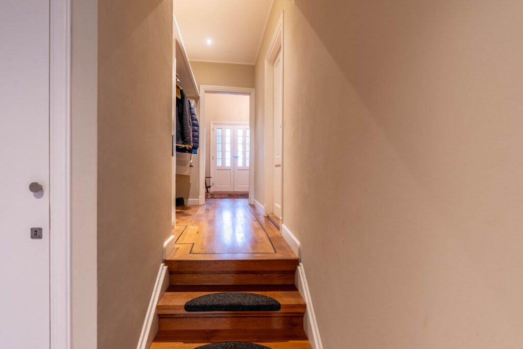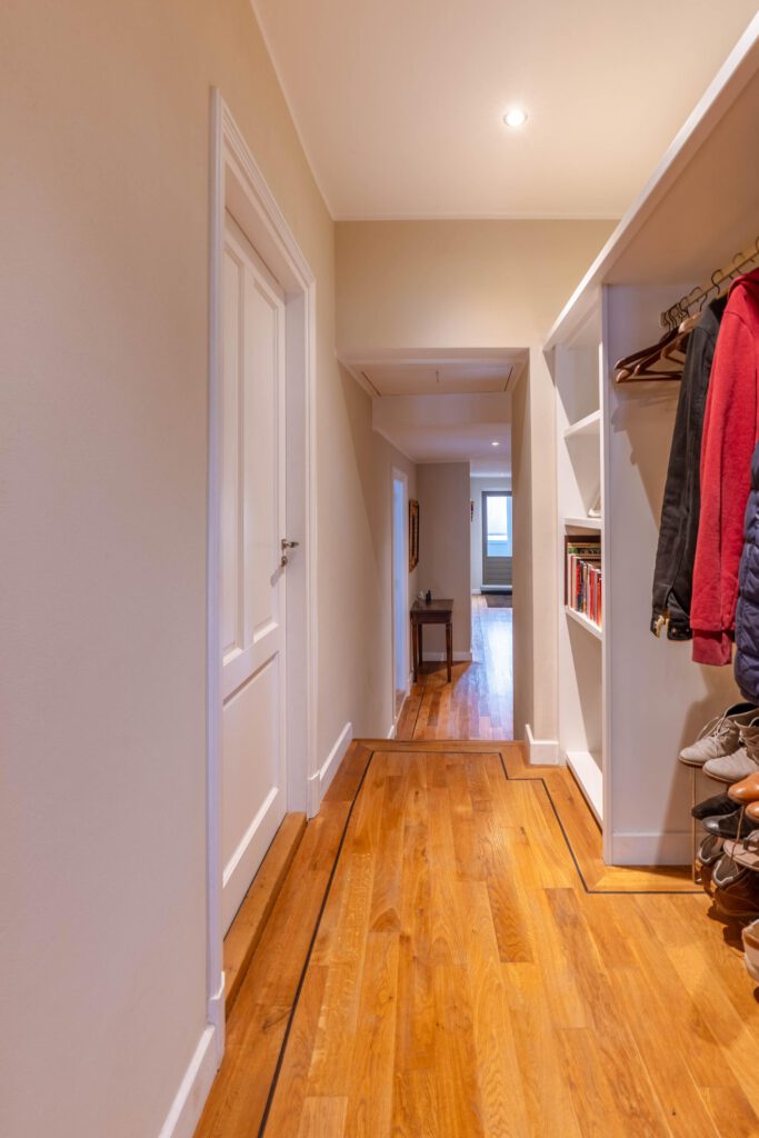 Je komt binnen via je eigen entree en bereikt via de trap de hal van het appartement. Vanuit hier heb je toegang tot de slaapkamers, badkamer, keuken en woonkamer.