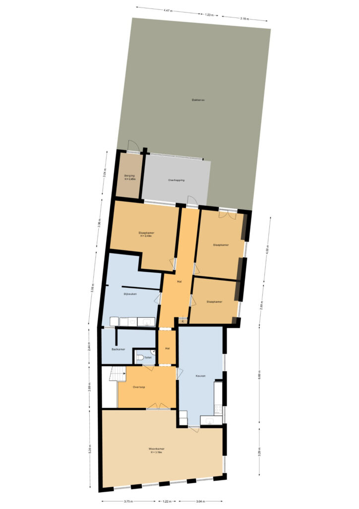Met maar liefst 175 m² woonoppervlakte heb je hier alle ruimte die je nodig hebt. En voor wie graag buiten leeft: het enorme dakterras van 115 m² ligt op het zuidoosten, waardoor je de hele dag kunt genieten van de zon. Via dit dakterras is er een brandtrap naar beneden, waar je achter een afgesloten poort je fietsen veilig kunt stallen.