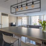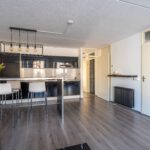 De woonkamer van circa 30 m² is licht en ruim en staat in open verbinding met de keuken. De moderne keuken is uitgevoerd in hoogglans zwart en beschikt over een keramische kookplaat, r.v.s. wasemkap, koelkast, afwasmachine en een gezellige eetbar. Aan de straatzijde is een loggia van circa 3 m² gesitueerd.