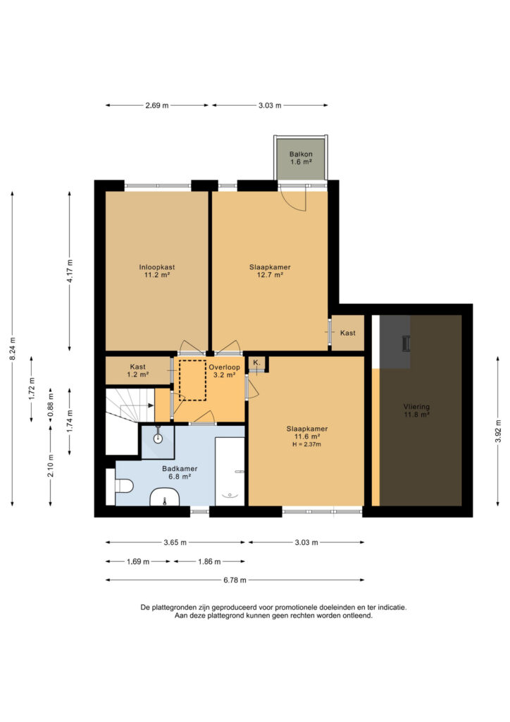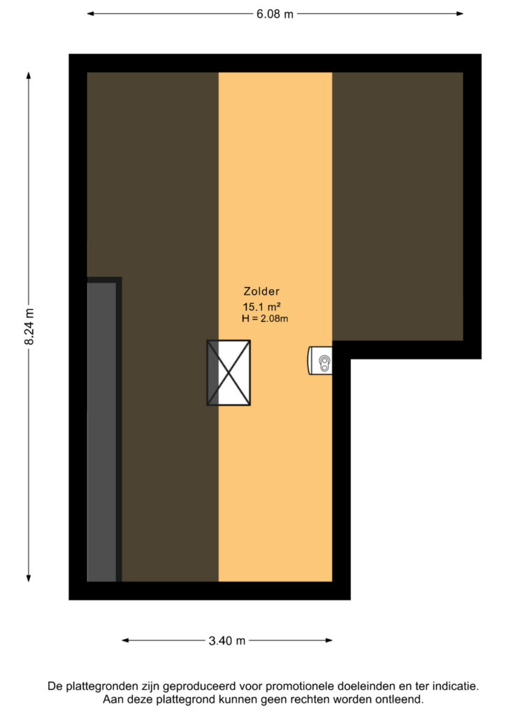 Vanaf de overloop is er toegang tot de vliering, die extra opbergruimte biedt.