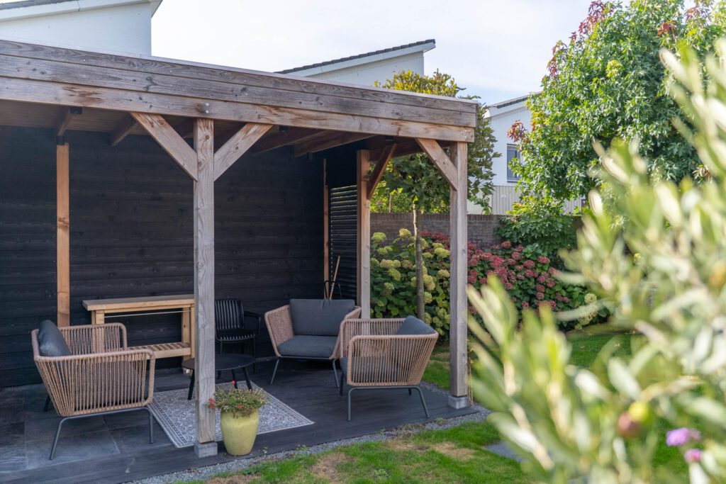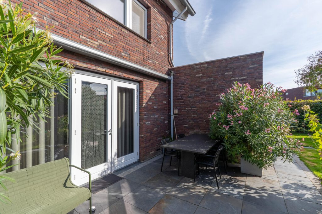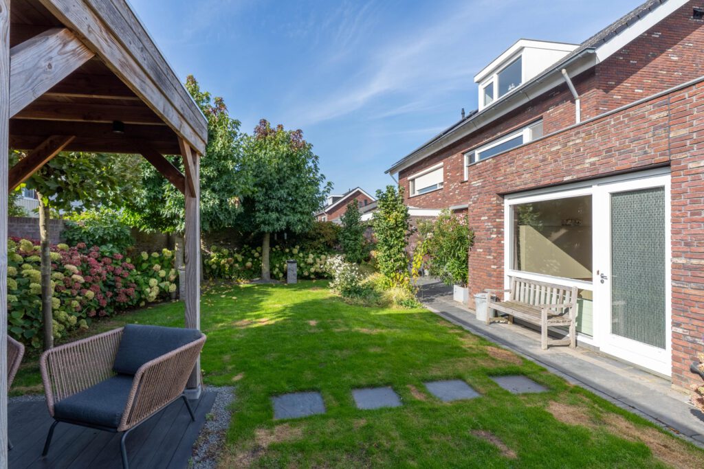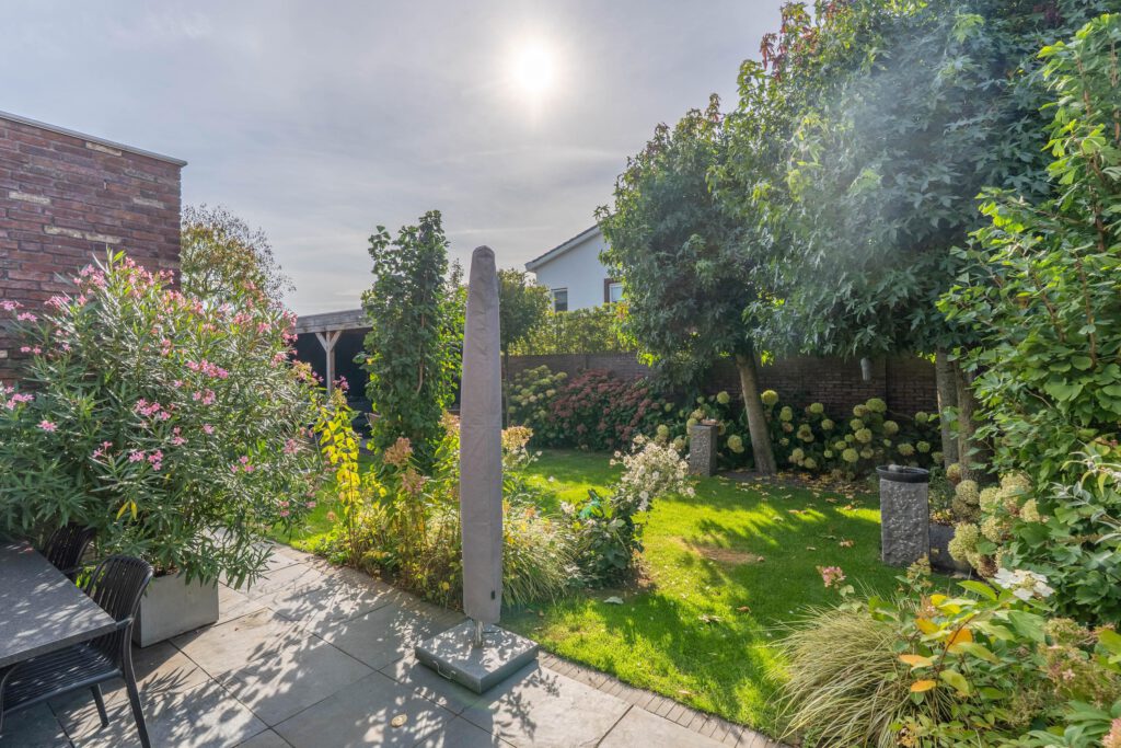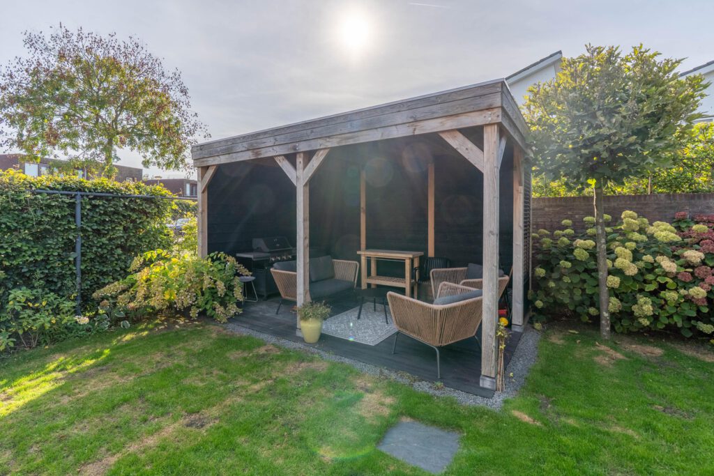 De tuin ligt op het zuidwesten, waardoor je de hele dag door van de zon kunt genieten. Dankzij de volwassen beplanting heeft de tuin een sfeervolle en groene uitstraling, terwijl hij toch prettig in onderhoud blijft. Daarnaast beschikt de tuin over een ruime overkapping waar je zowel in de zomer als in de winter heerlijk kunt zitten. Een fijne plek om tot rust te komen, maar ook ideaal voor een gezellige barbecue of een borrel met vrienden en familie.
