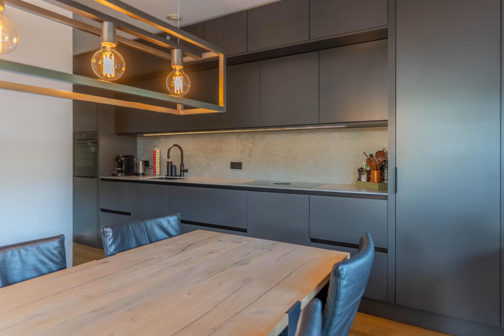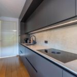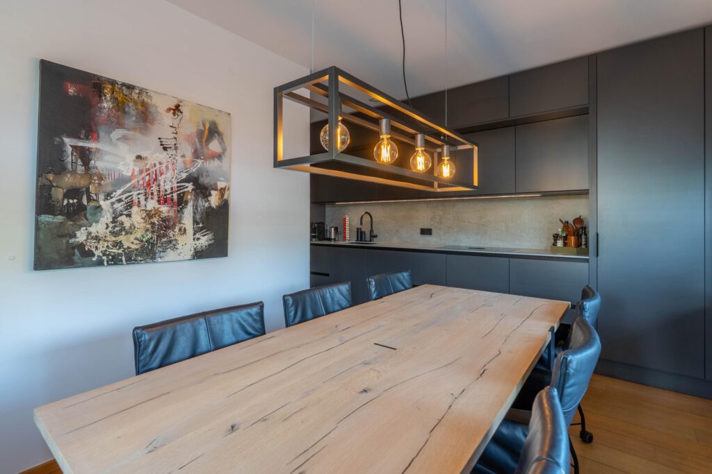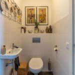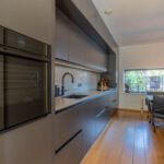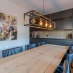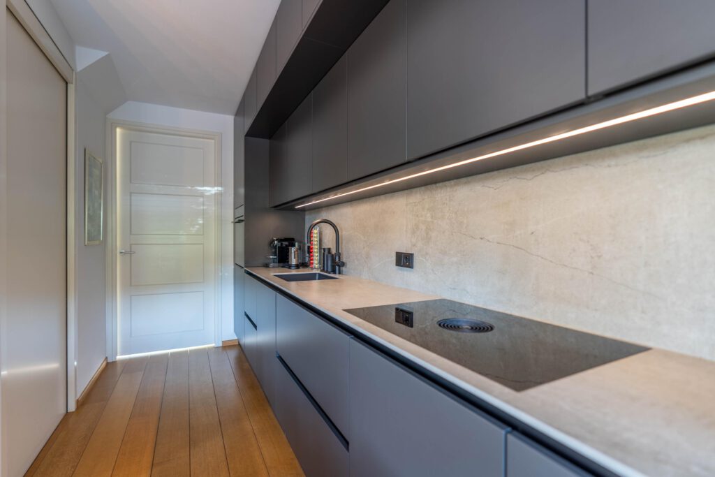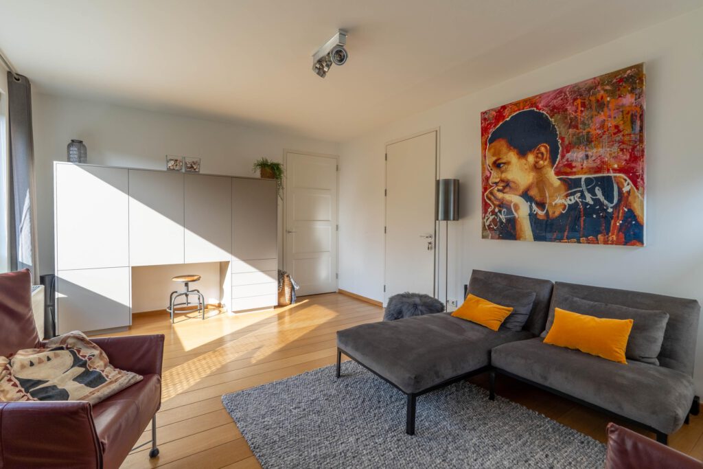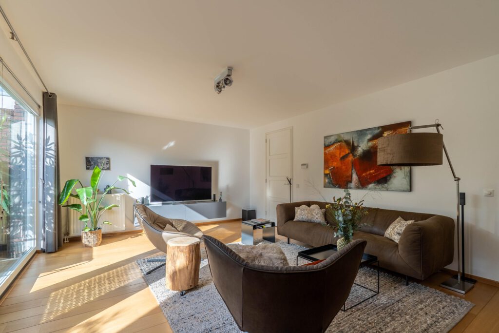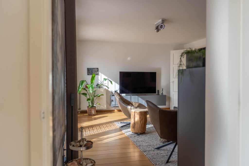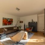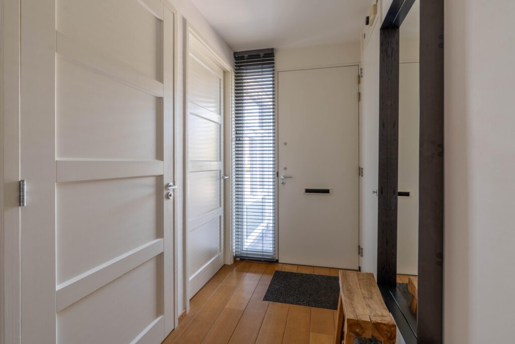 Bij binnenkomst voel je direct de warme en gezellige sfeer van de woning. De hal met houten vloer geeft via de rechterdeur toegang tot een modern toilet en via de andere deur tot de keuken. Deze moderne keuken is een echte eyecatcher: strak afgewerkt, volledig uitgerust met onder andere een koelkast, vriezer, inductiekookplaat met afzuiging, een Quooker en combi-oven, De eetkamer biedt volop ruimte voor een grote eettafel en een knusse zithoek, perfect voor lange avonden tafelen.