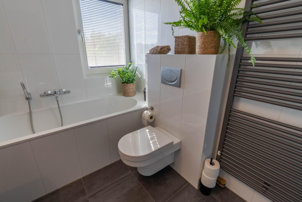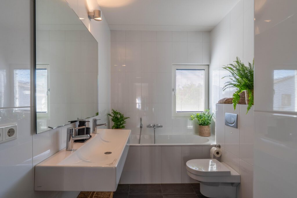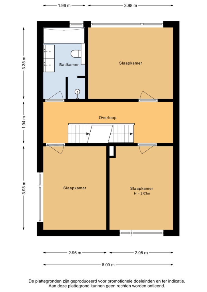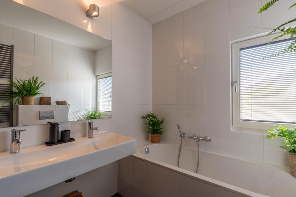 De trap brengt je naar een ruime overloop waar drie grote, lichte slaapkamers te vinden zijn. De badkamer is modern en stijlvol ingericht met een ligbad, dubbele wastafels, een ruime inloopdouche en een toilet. Kortom alles wat je nodig hebt.