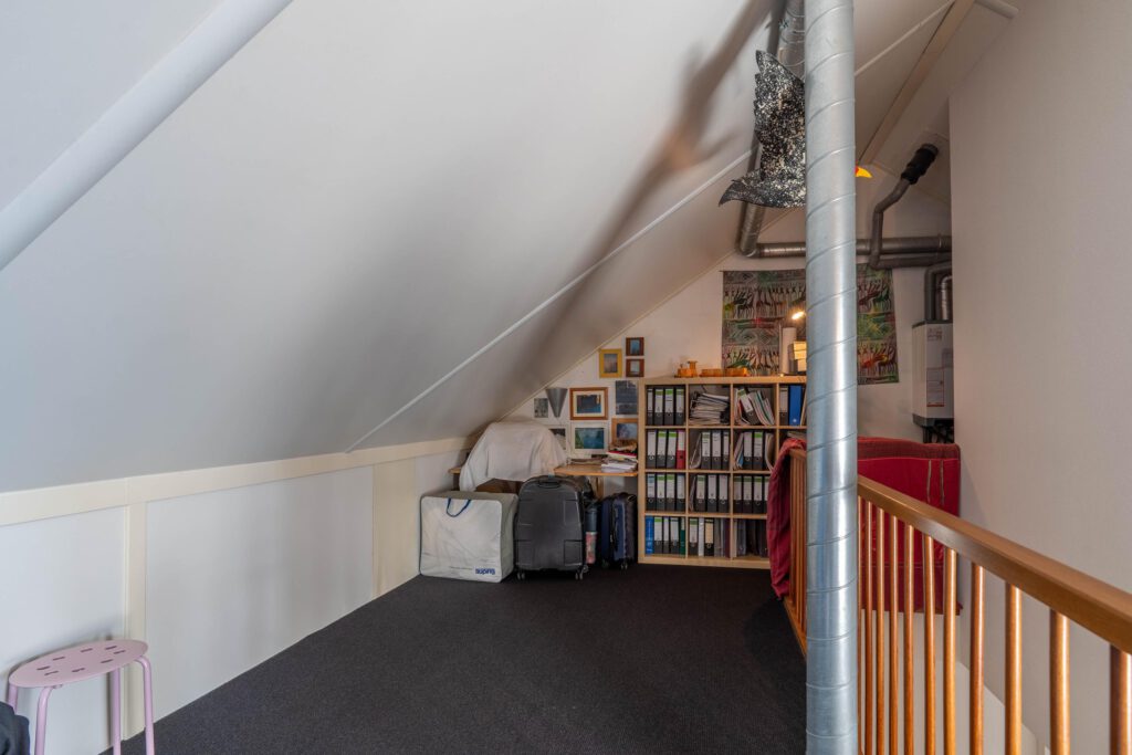 De vaste trap leidt naar de verrassend ruime tweede verdieping. Hier bevinden zich nog twee volwaardige kamers, ideaal als extra slaapkamers, hobbyruimtes of werkplekken. De indelingsmogelijkheden zijn eindeloos!