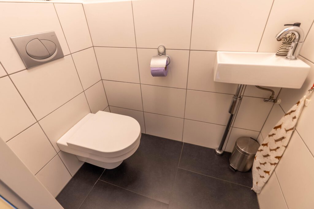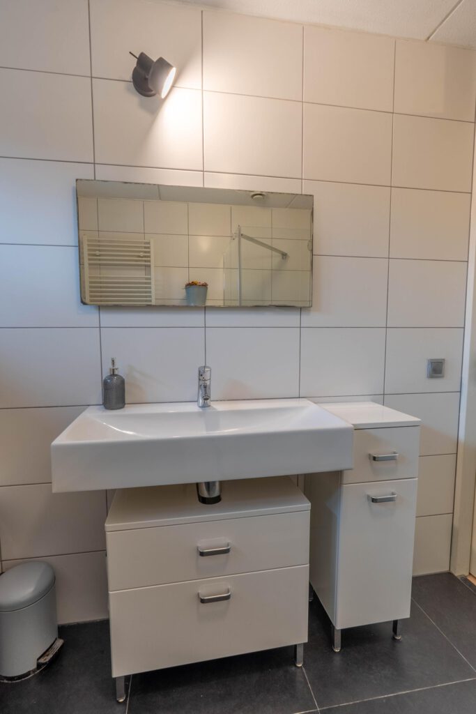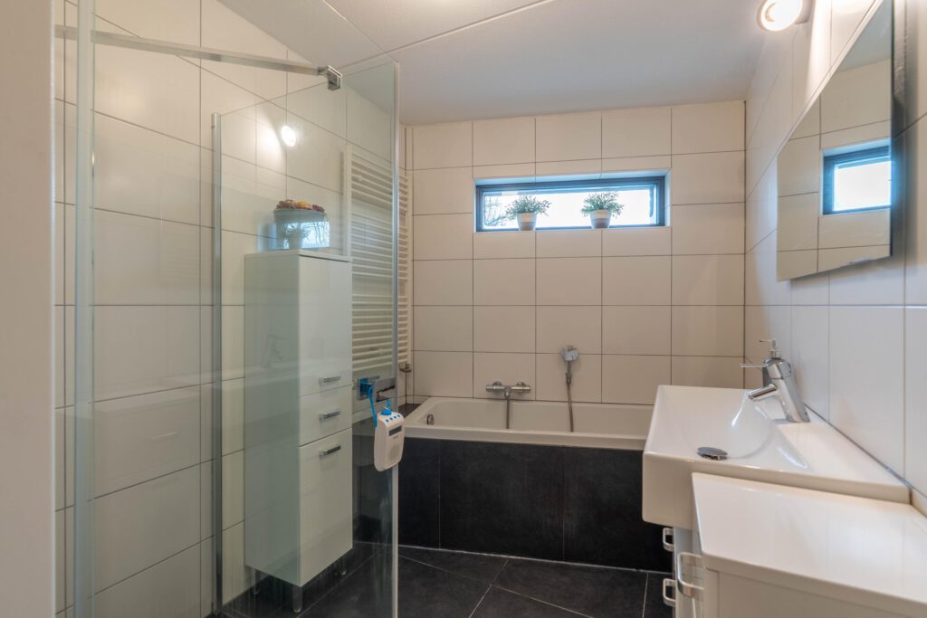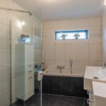 Op de eerste verdieping zijn twee ruime slaapkamers aanwezig. De badkamer is compleet uitgevoerd met een douche, ligbad en wastafel. Het toilet is separaat, wat extra comfort biedt.