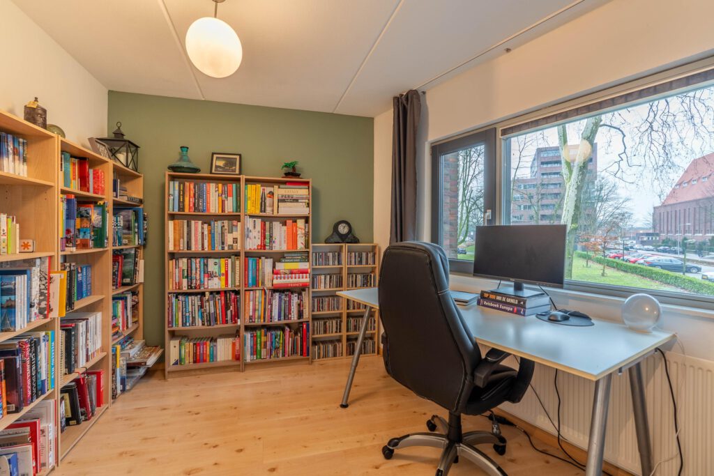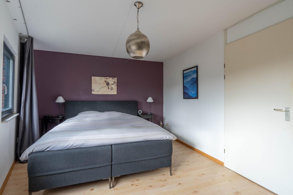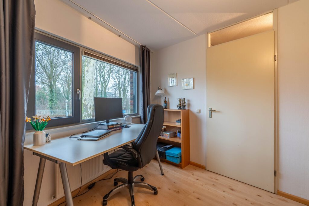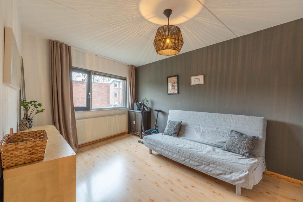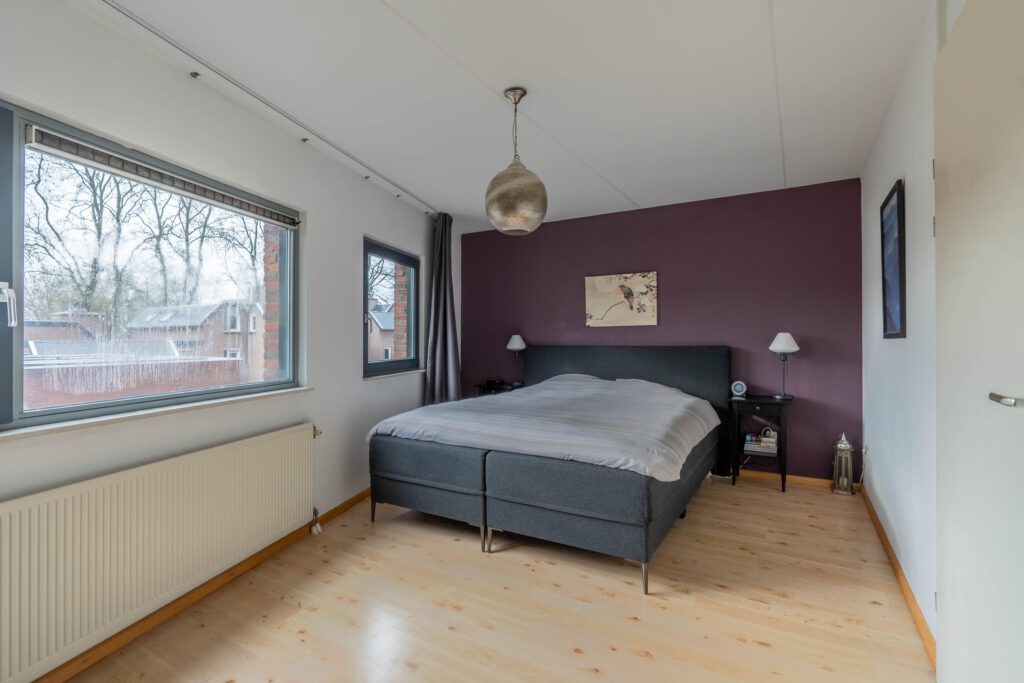 Via een vaste trap bereik je de tweede verdieping. Hier vind je een open ruimte met ingebouwde kasten die samen een royale inloopkast vormen. Daarnaast is hier een derde ruime slaapkamer met veel daglicht, ideaal als hoofdslaapkamer, werkkamer of logeerkamer.