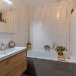 Beschikt over drie slaapkamers, waarvan één momenteel in gebruik is als inloopkast. De moderne badkamer is compleet ingericht met een ligbad, aparte douche, toilet en wastafelmeubel met spiegelkast.