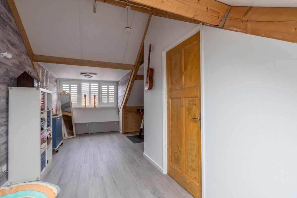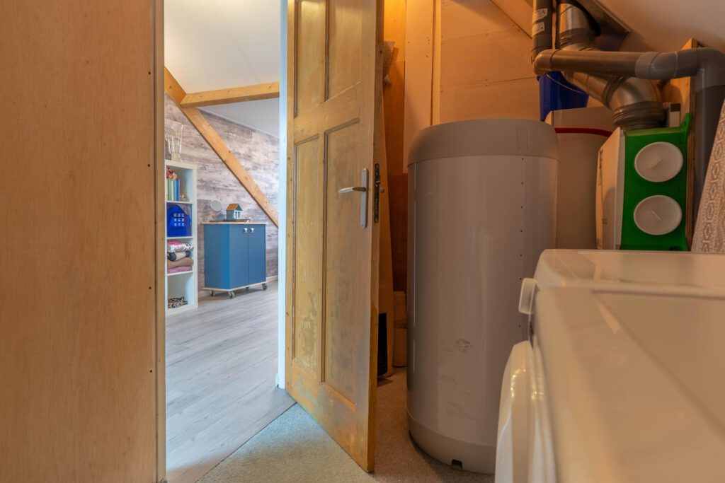 Een volwaardige vierde slaapkamer met dakkapel, waardoor deze verdieping heerlijk licht en ruim is. Daarnaast is hier een praktische bergruimte met de witgoedaansluitingen.