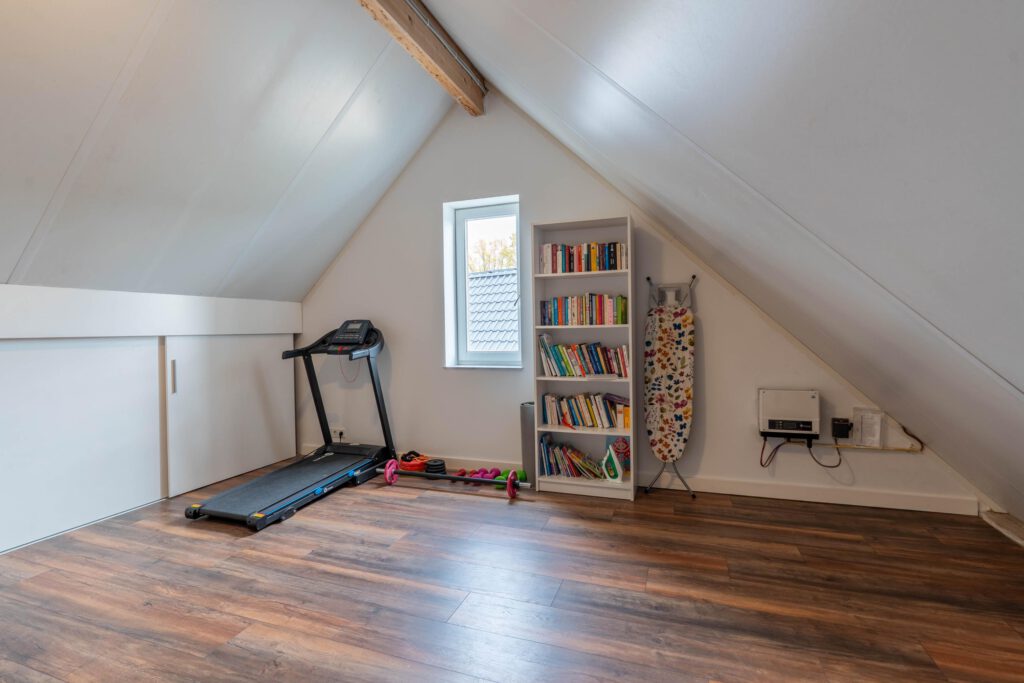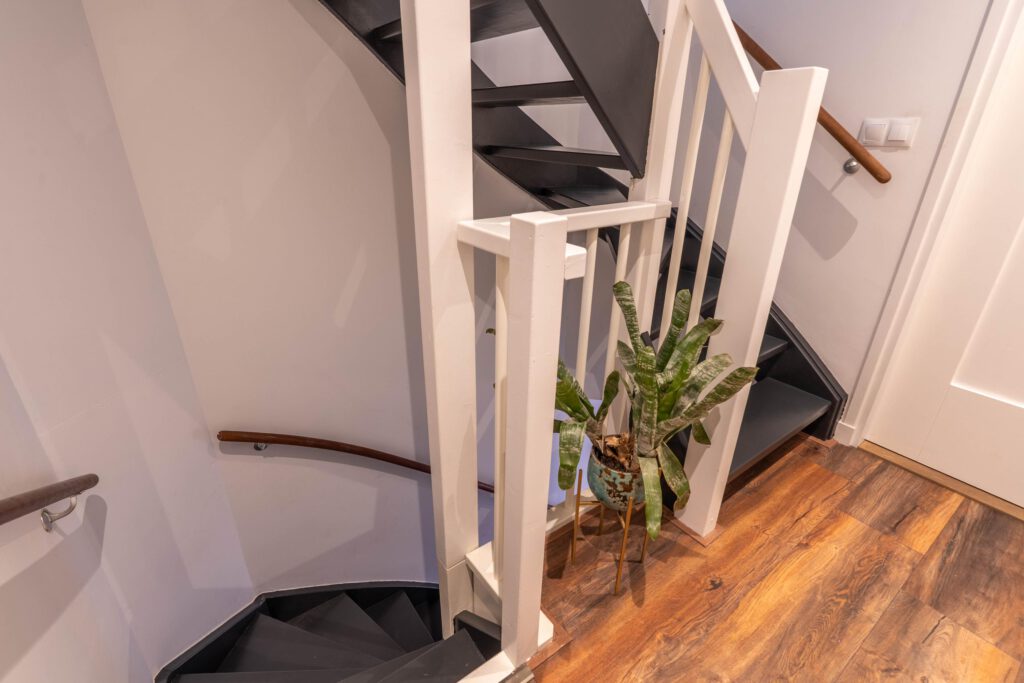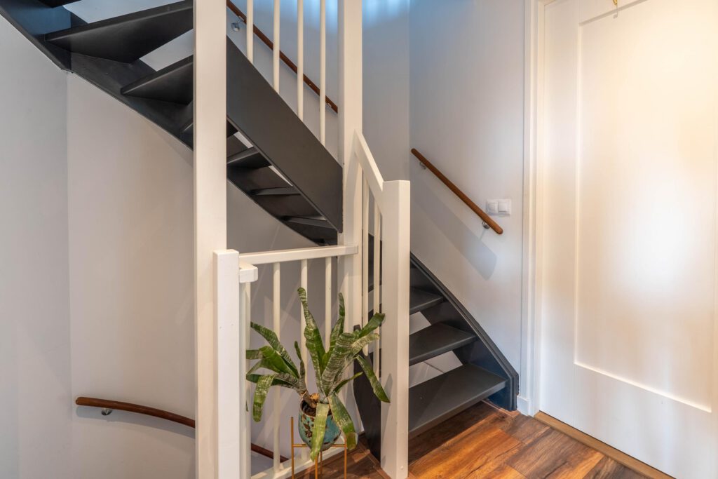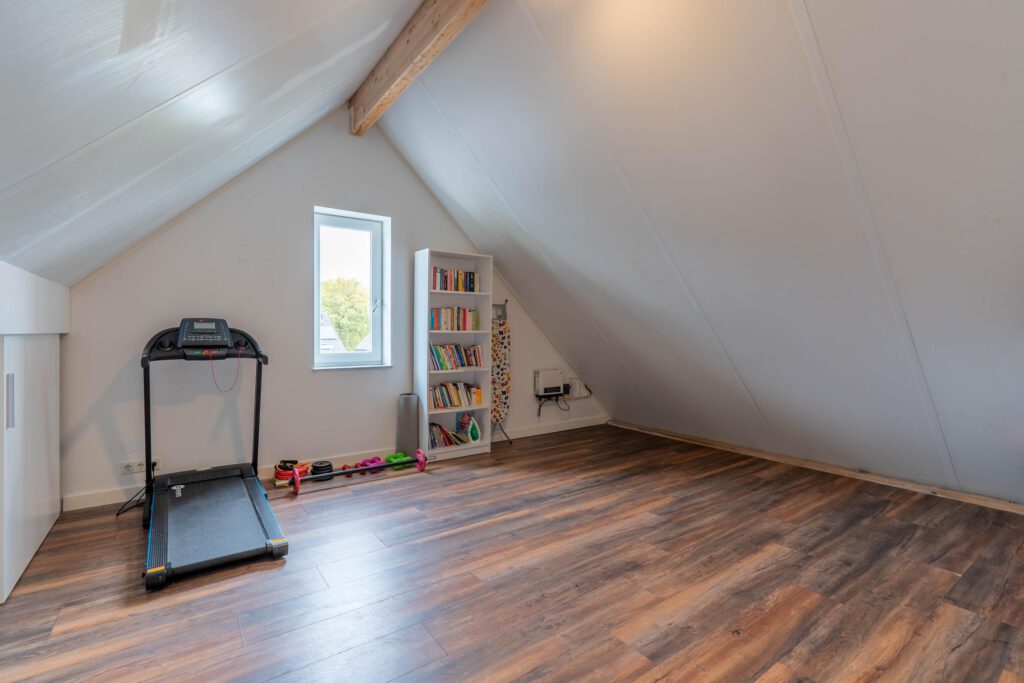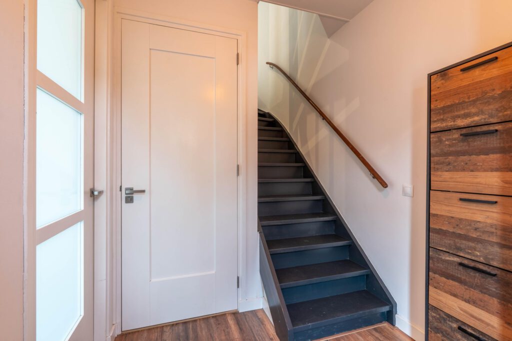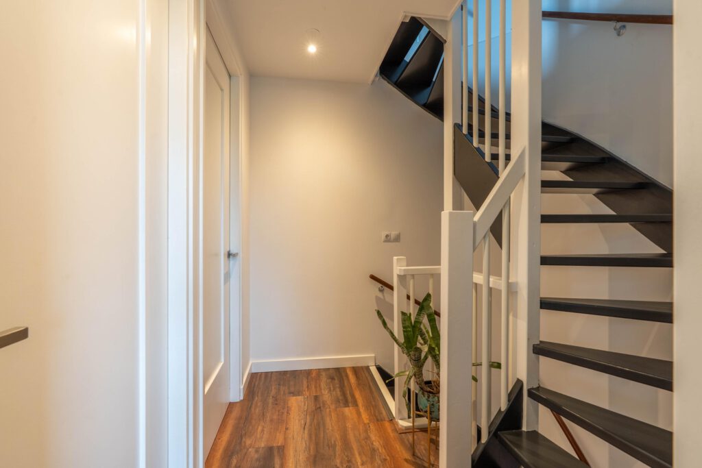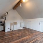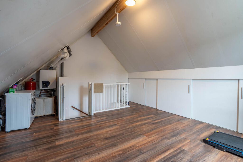 De vaste trap brengt je naar de tweede verdieping: een royale open ruimte met volop mogelijkheden. Hier kun je eenvoudig een derde slaapkamer of hobbyruimte creëren. Ook vind je hier de witgoedaansluitingen en achter schuifdeuren is extra opbergruimte aanwezig.