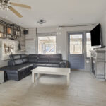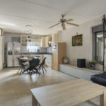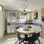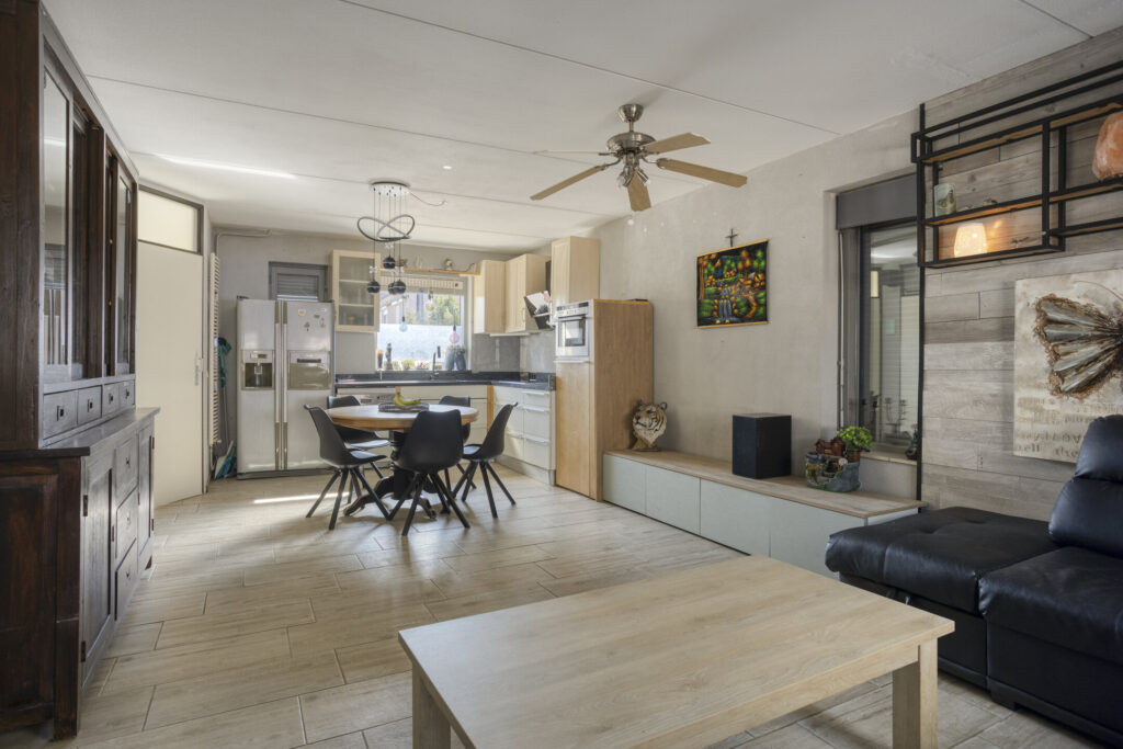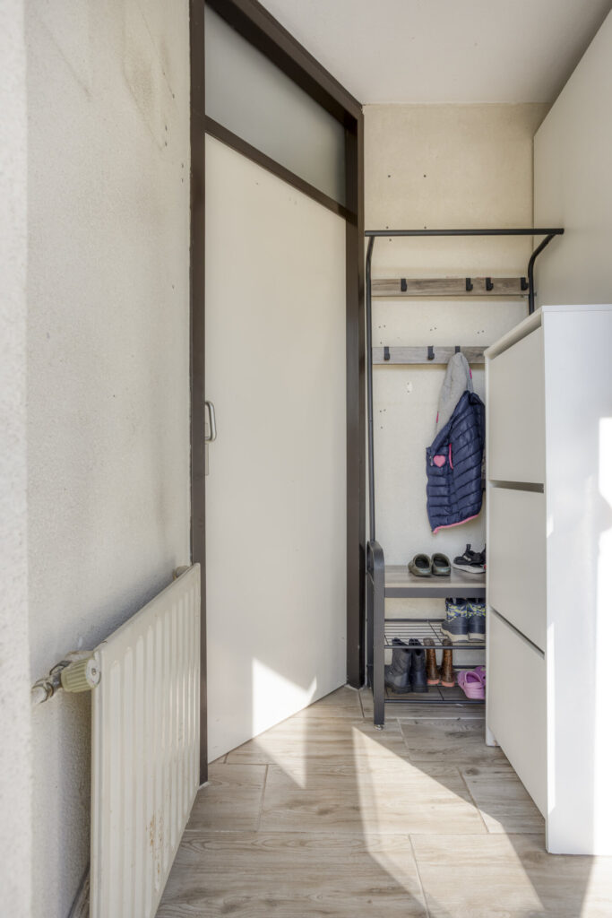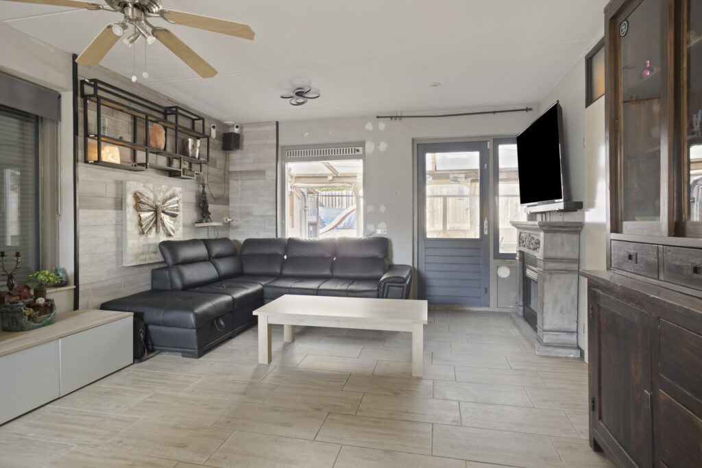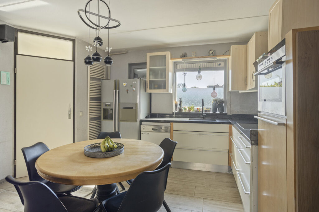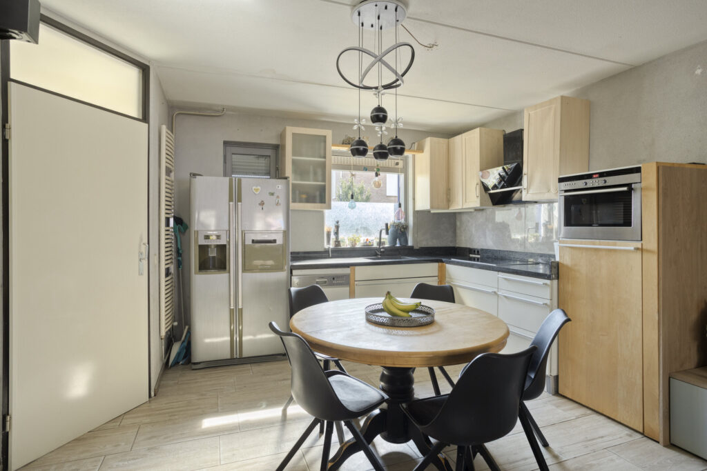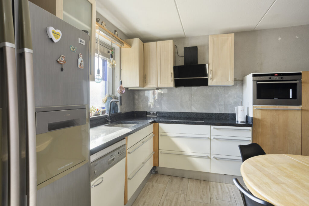 Bij binnenkomst stap je in een kleine entree die leidt naar de woonkamer. De woonkamer is tuingericht en biedt voldoende ruimte voor een comfortabele zithoek. Dankzij de grote raampartijen komt er prettig daglicht binnen en voel je je hier direct thuis. Aan de voorzijde staat de woonkamer in open verbinding met de moderne keuken, uitgevoerd in een praktische L-opstelling en voorzien van diverse inbouwapparatuur. Een fijne plek om te koken én gezellig samen te zijn.