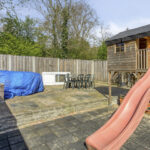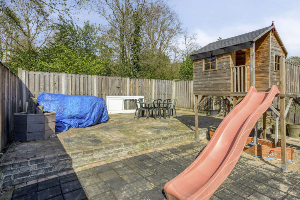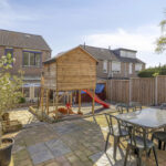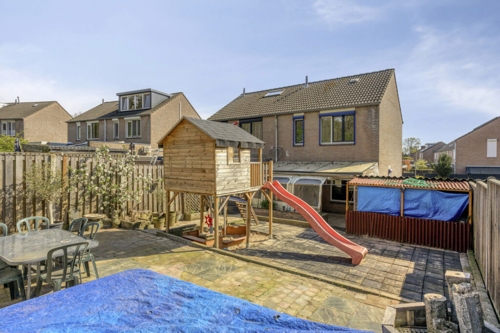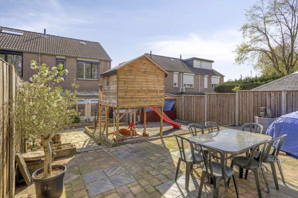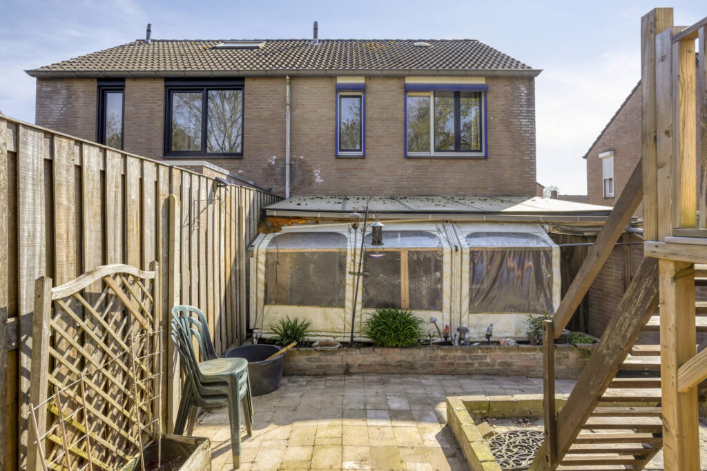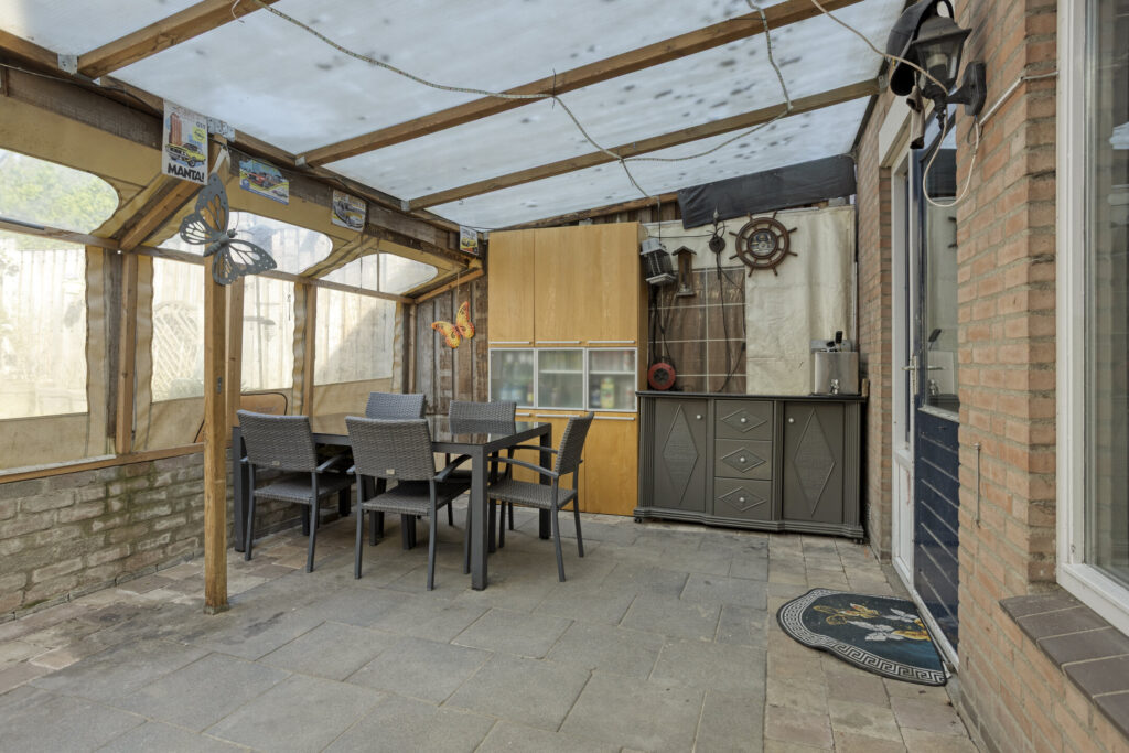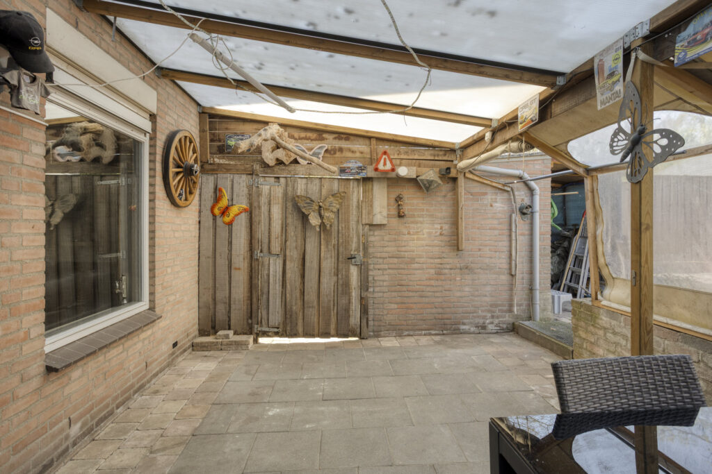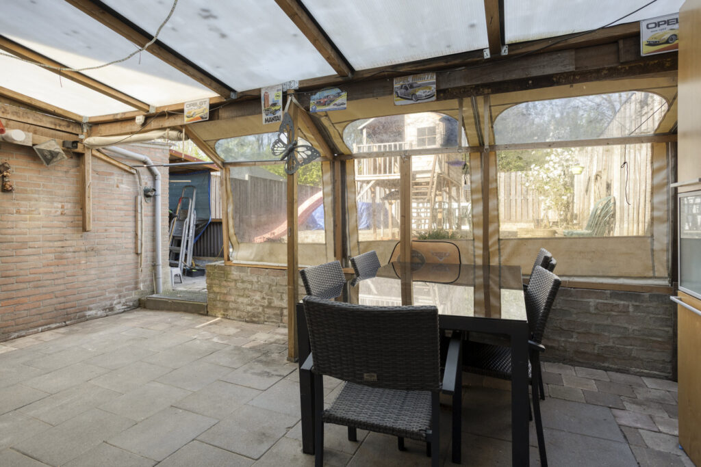 Via de woonkamer bereik je de overdekte terrasruimte, waardoor je vrijwel het hele jaar door van buiten kunt genieten. De achtertuin is verrassend ruim en biedt verschillende mogelijkheden om hier een mooie plek van te maken. Via de oprit is er toegang tot de berging en er is een vrije achterom.