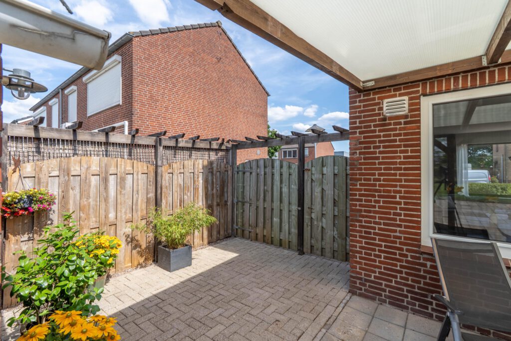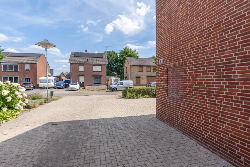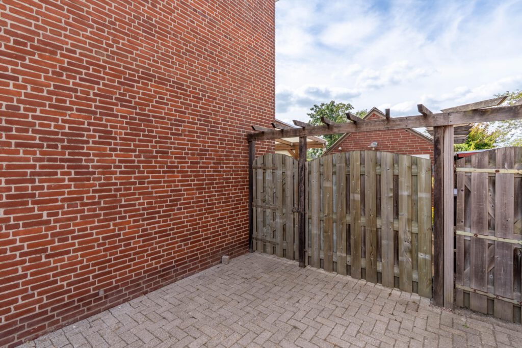 De voortuin is volledig betegeld en biedt volop mogelijkheden voor eigen invulling. Naast de woning