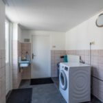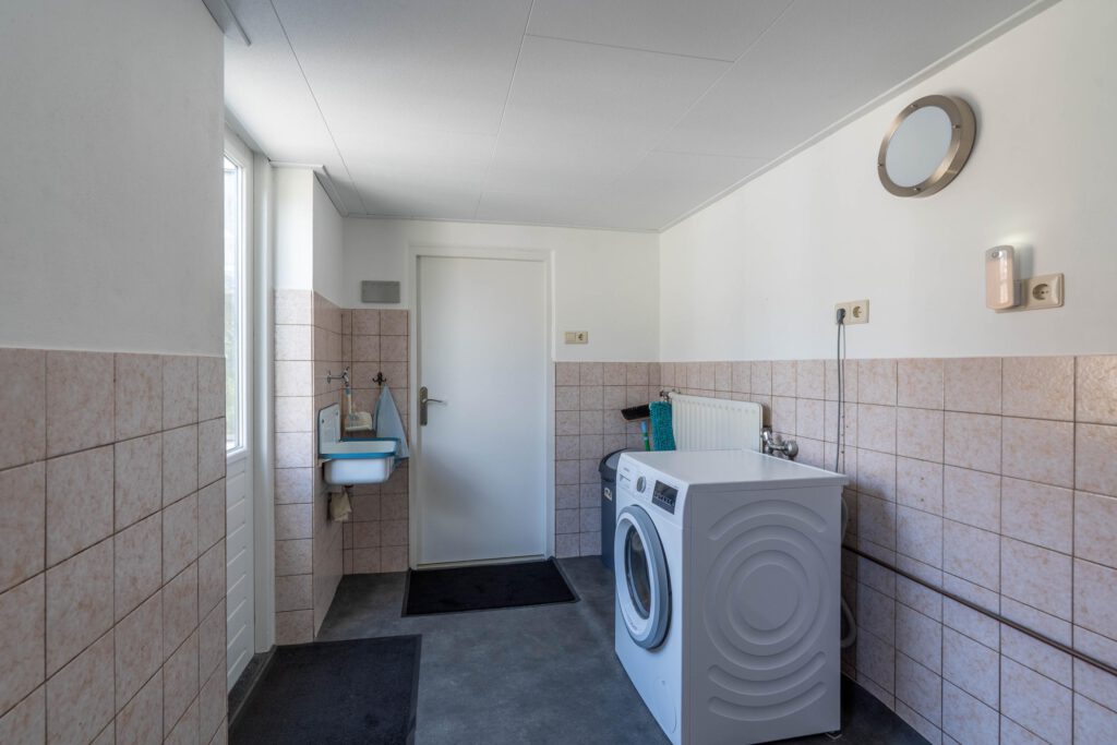 ruime bijkeuken met aansluitingen voor wasmachine en droger, plek voor een grote koelkast en