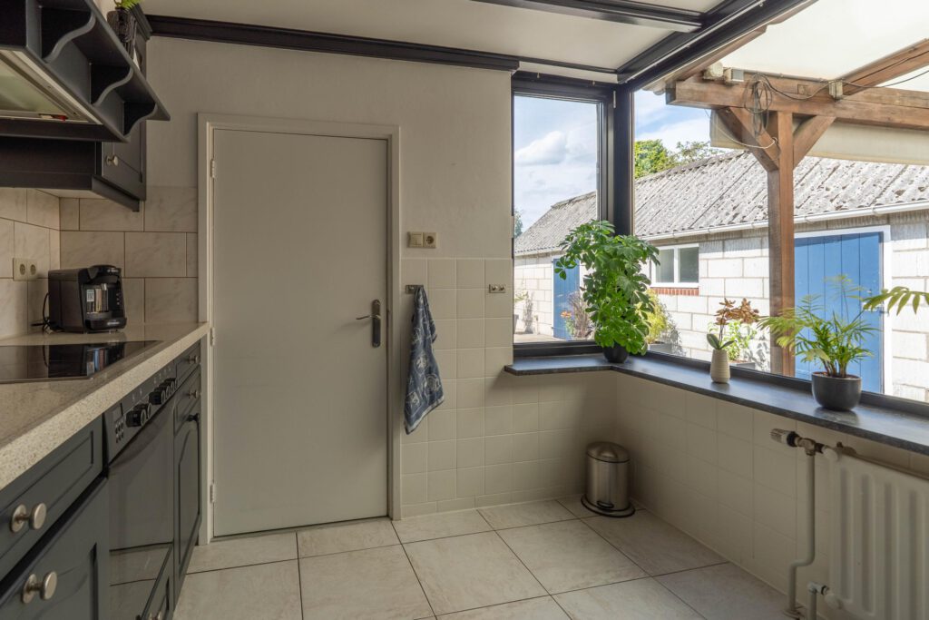 uitstraling en is uitgerust met een inbouwoven, kookplaat en afzuigkap. Aangrenzend vindt u de