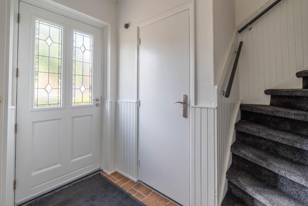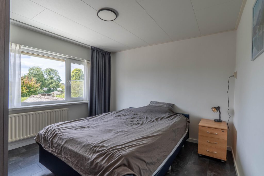 Op de verdieping bevinden zich drie slaapkamers, allen voorzien van dezelfde antracietkleurige
