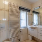vloer wat voor een mooi geheel zorgt. De master bedroom kijkt uit over de tuin. De badkamer is