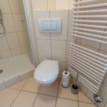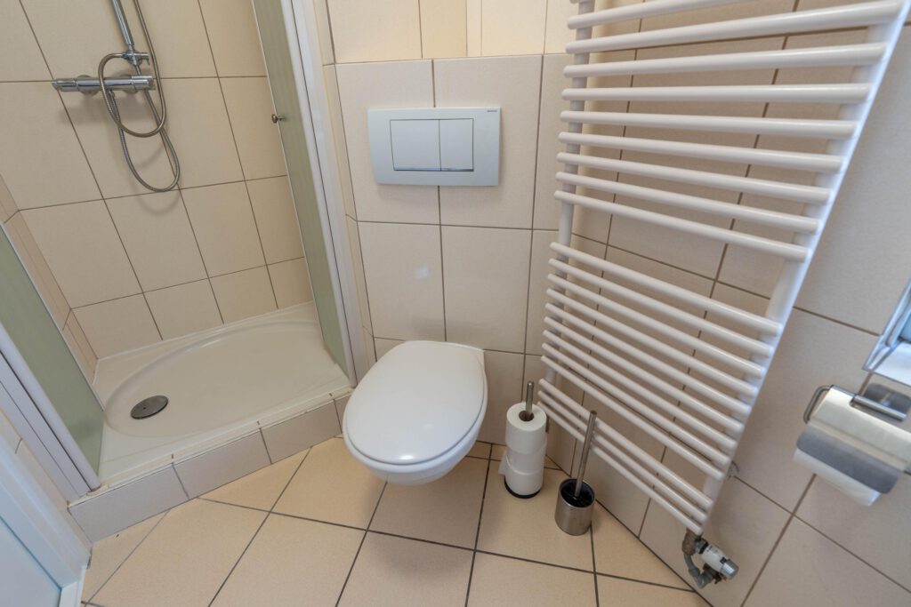 voorzien van een douchecabine, een tweede toilet en een groot badkamermeubel met veel