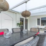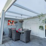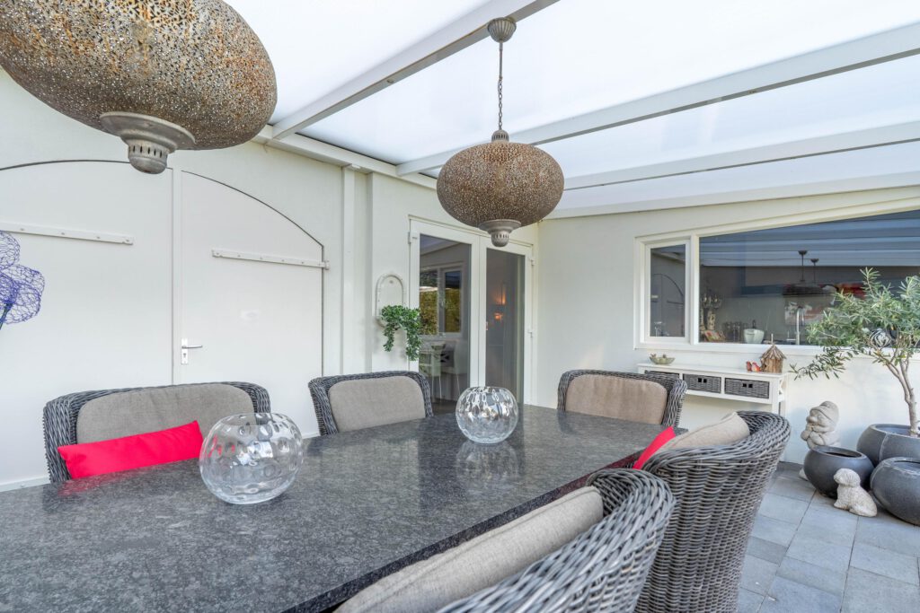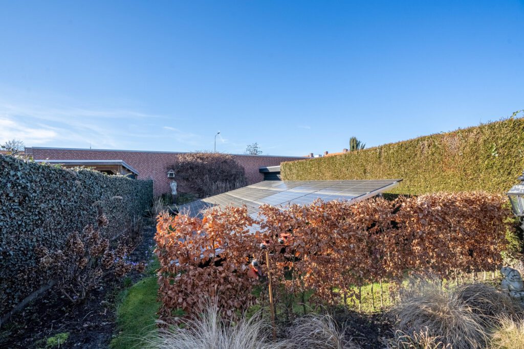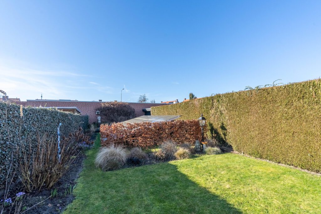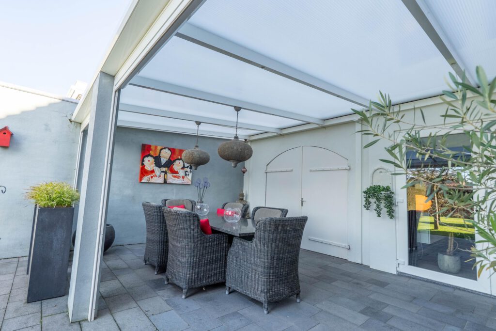 De tuin is gelegen op het westen, waardoor je hier lang van de zon kunt genieten. Dankzij de volwassen beplanting heeft de tuin een groene en sfeervolle uitstraling en biedt deze bovendien veel privacy. In de tuin staat een tuinhuisje, ideaal voor extra bergruimte en opslag. Daarnaast is er een ruime overkapping aanwezig, zodat je zowel in het voorjaar als in het najaar comfortabel buiten kunt zitten. Achter in de tuin bevinden zich bovendien 20 zonnepanelen. De tuin biedt daarmee een fijne combinatie van ontspanning, privacy en praktisch gemak.