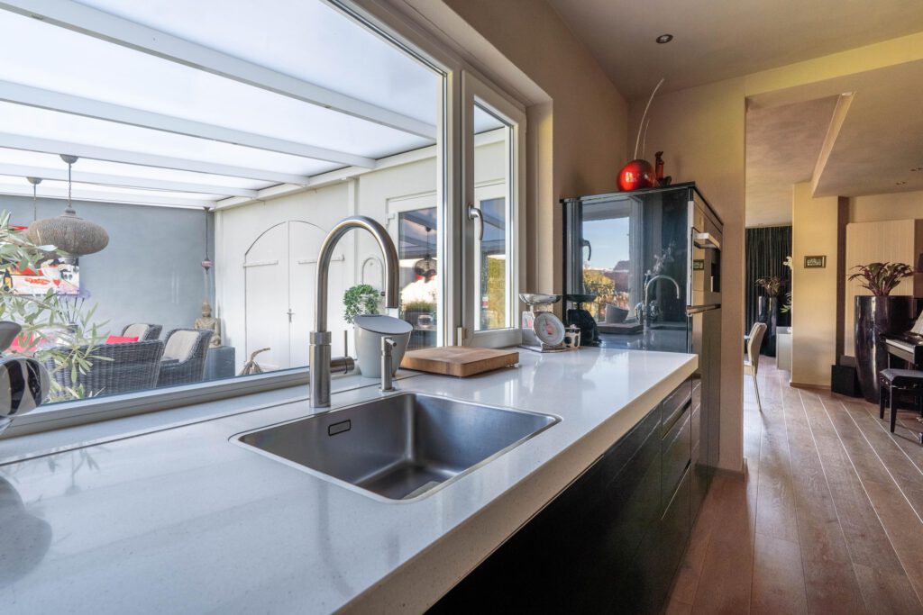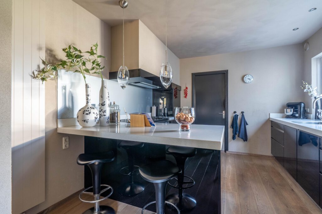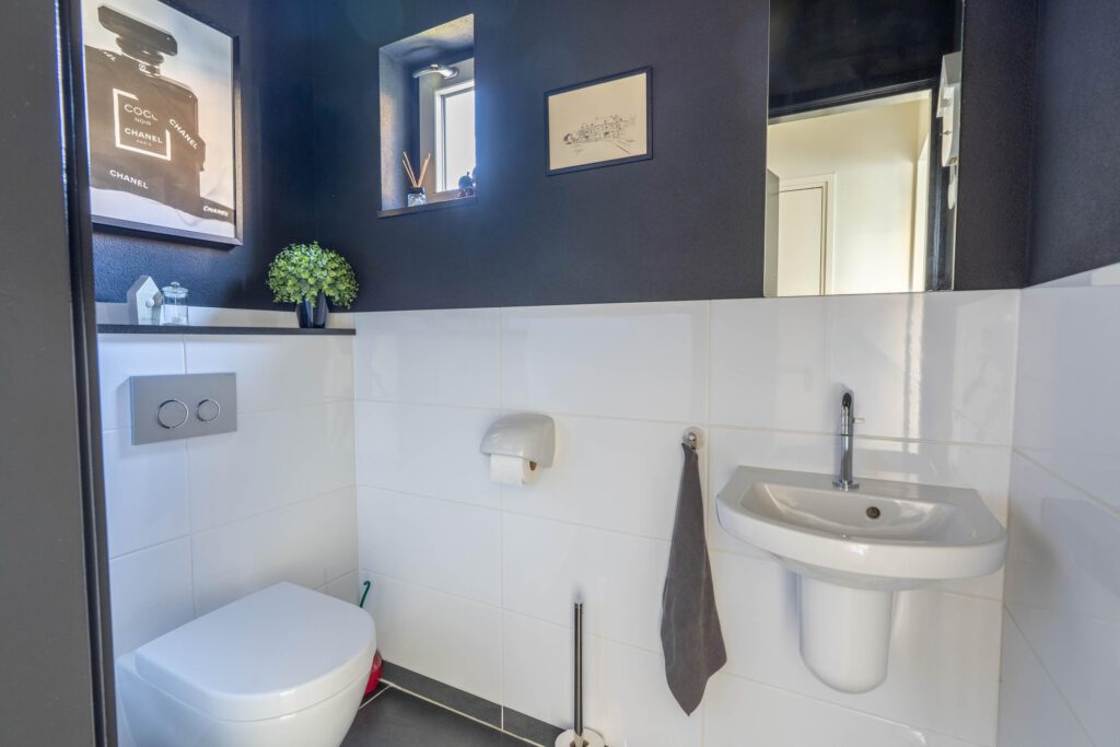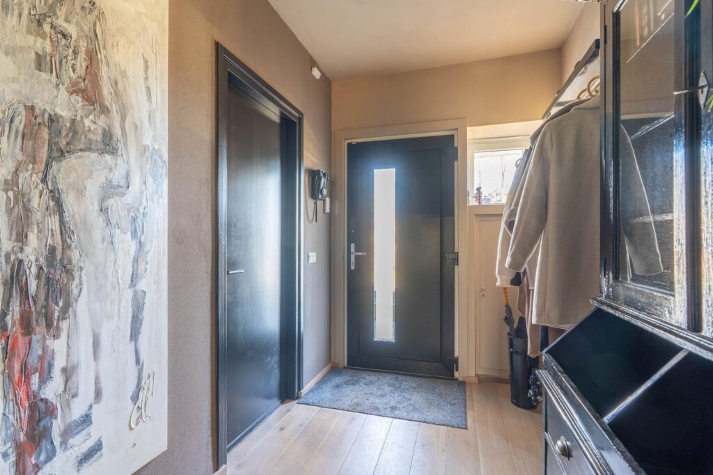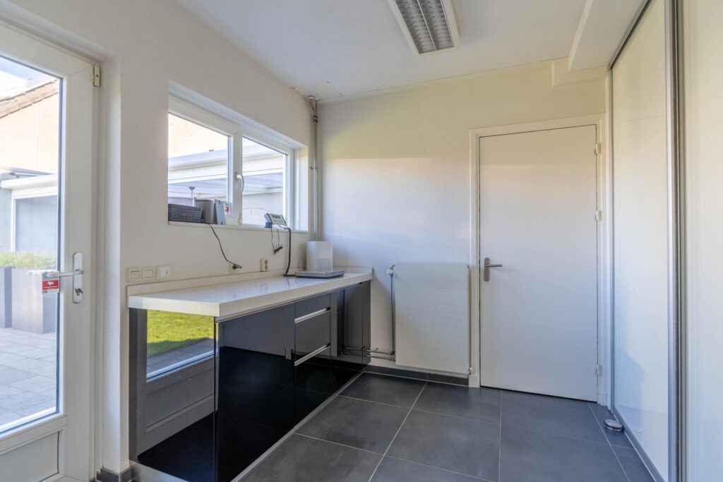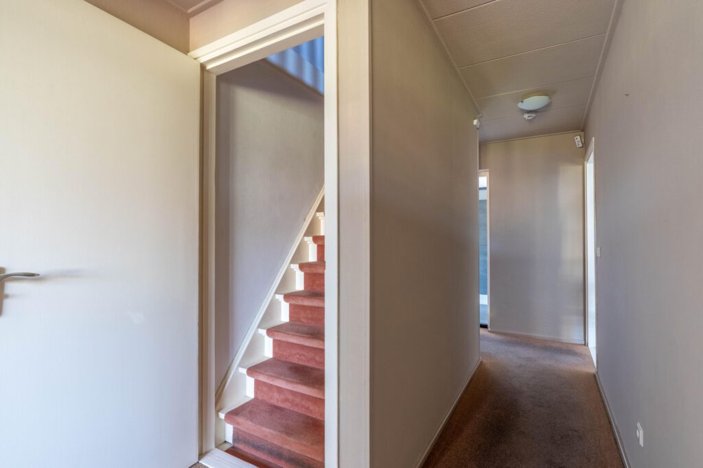 Via de keuken kom je in de bijkeuken, waar zich ook het toilet bevindt. Vanuit deze ruimte is er toegang tot de tweede trap naar de eerste verdieping. De woning beschikt daarmee over twee trapopgangen, wat zorgt voor extra gebruiksgemak en flexibiliteit in de indeling.