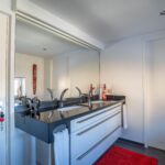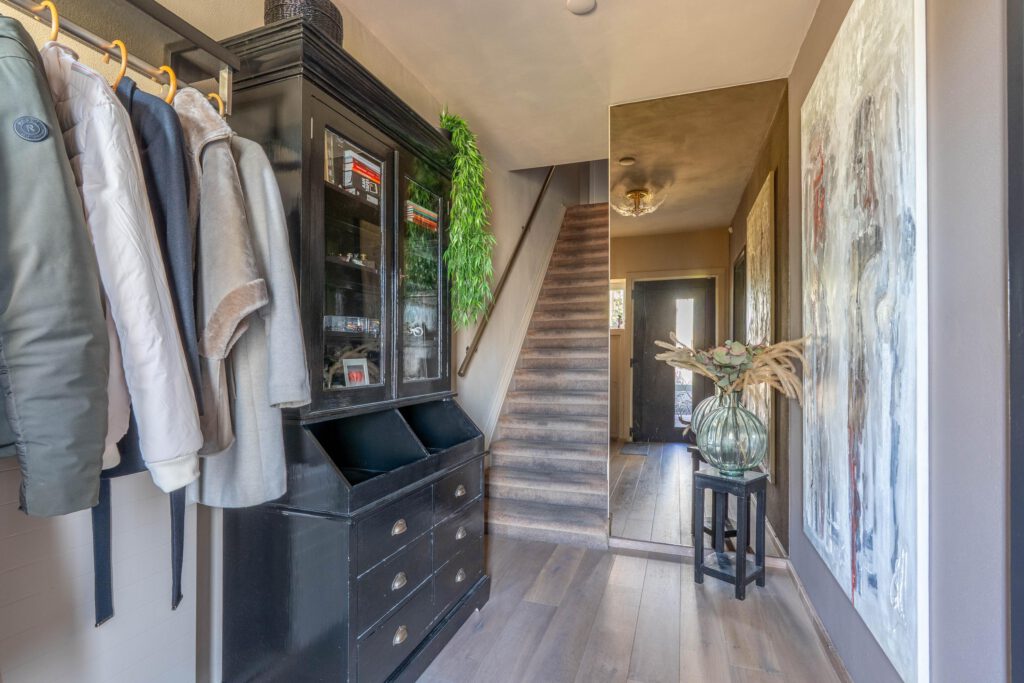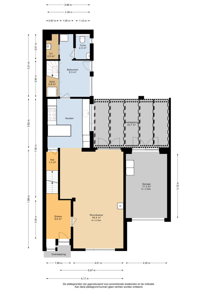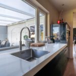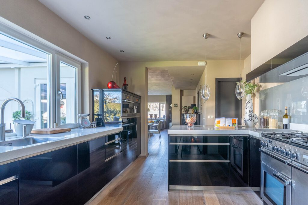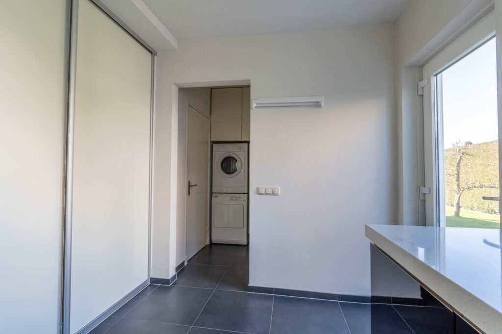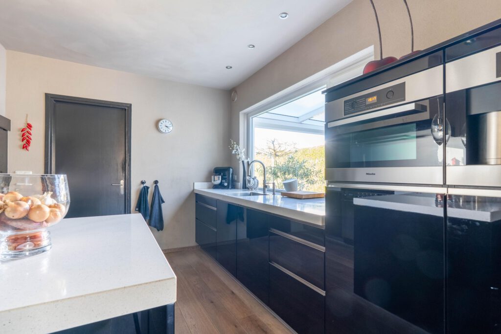 Via de keuken kom je in de bijkeuken, waar zich ook het toilet bevindt. Vanuit deze ruimte is er toegang tot de tweede trap naar de eerste verdieping. De woning beschikt daarmee over twee trapopgangen, wat zorgt voor extra gebruiksgemak en flexibiliteit in de indeling.
