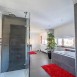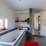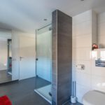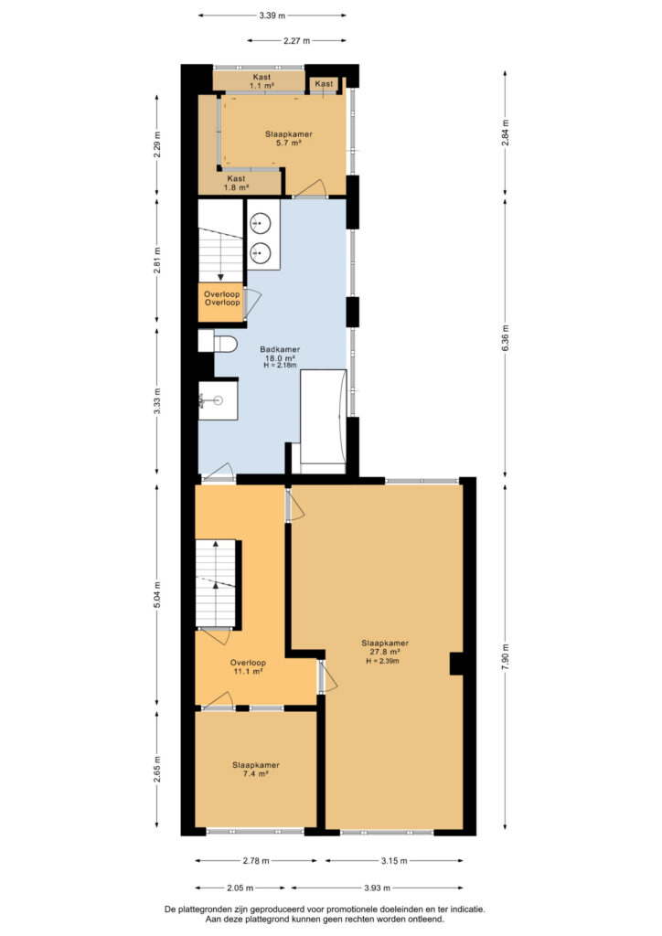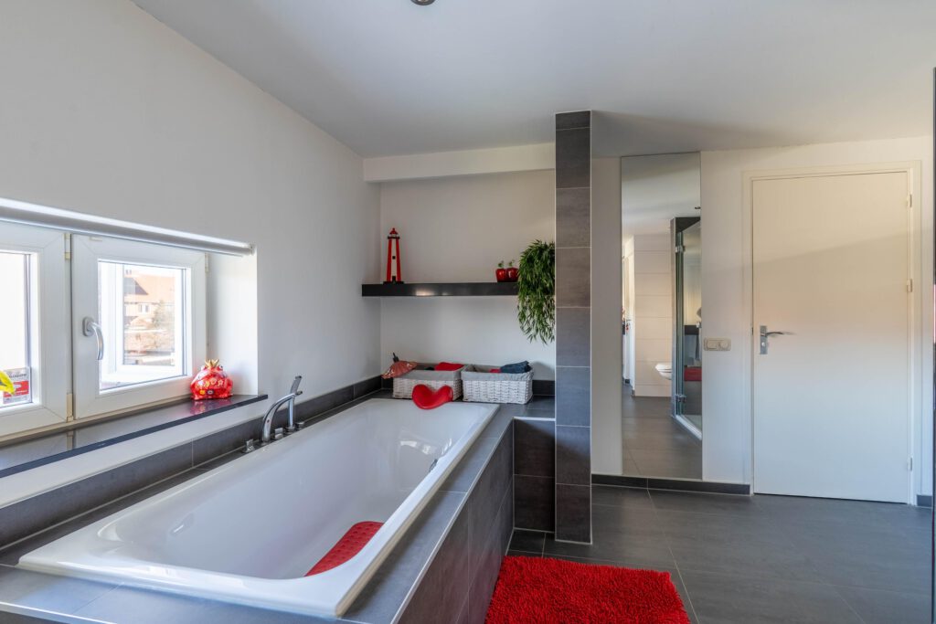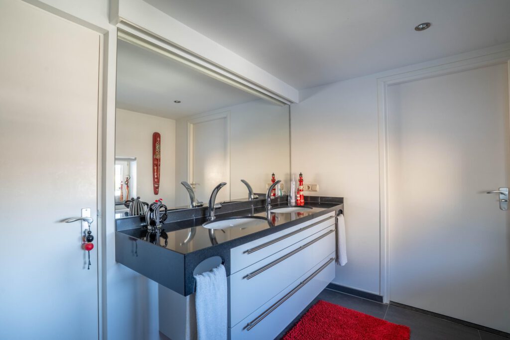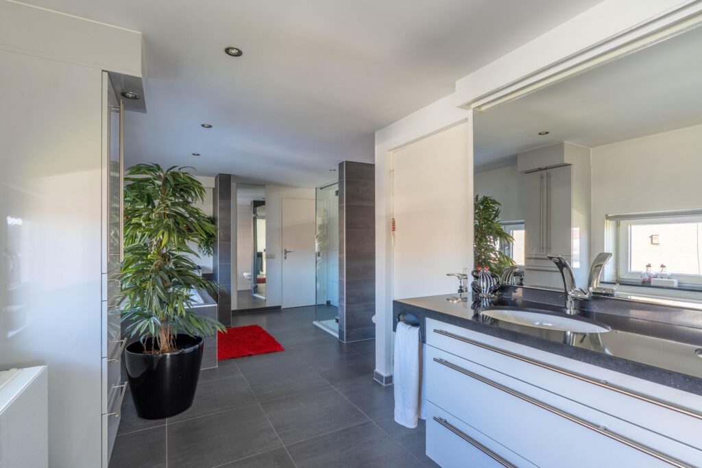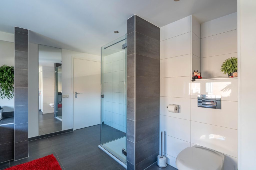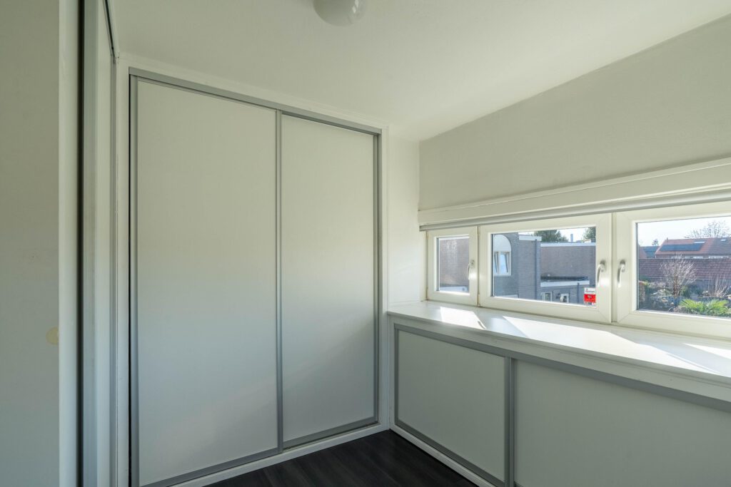 Op de eerste verdieping kom je uit op een ruime overloop met toegang tot twee slaapkamers en de badkamer. De grootste slaapkamer is van royaal formaat en kan desgewenst worden opgesplitst in twee volwaardige kamers. De tweede kamer is geschikt als slaap-, werk- of kinderkamer. De badkamer is ruim opgezet en voorzien van een ligbad, douche, toilet en dubbele wastafel. Vanuit de badkamer is er toegang tot een inloopkast, die eventueel ook kan worden ingericht als extra kamer. Deze verdieping biedt daarmee diverse indelingsmogelijkheden.