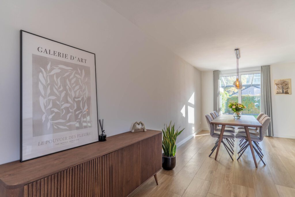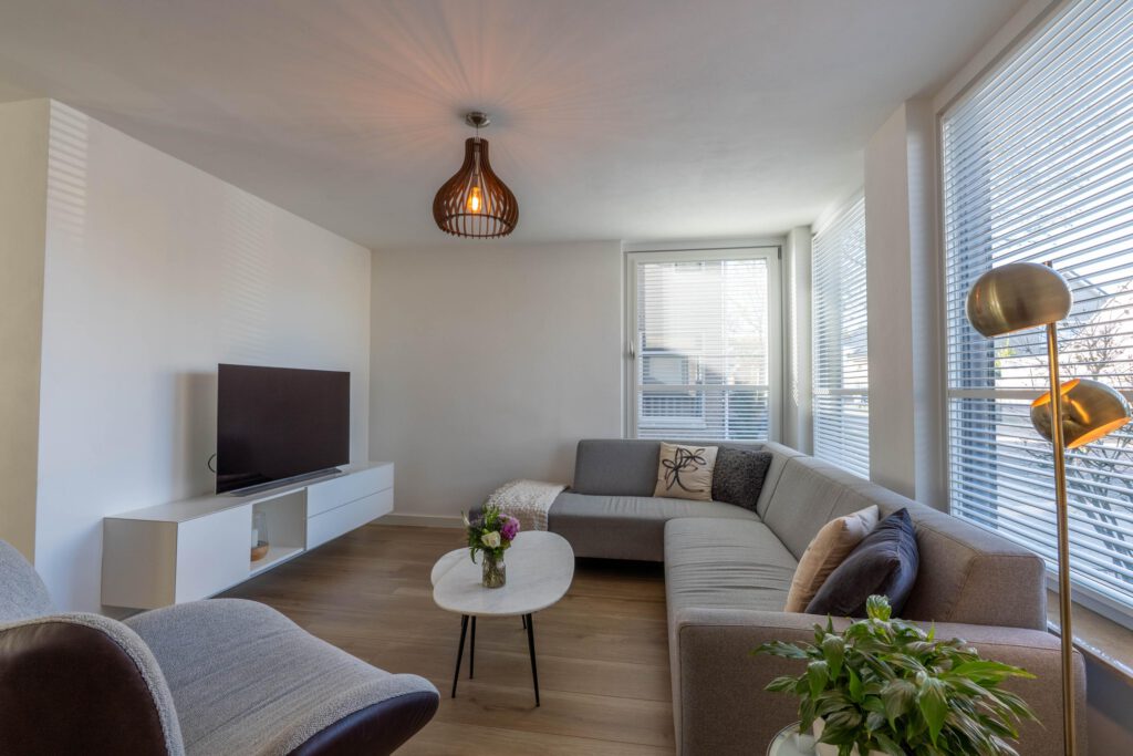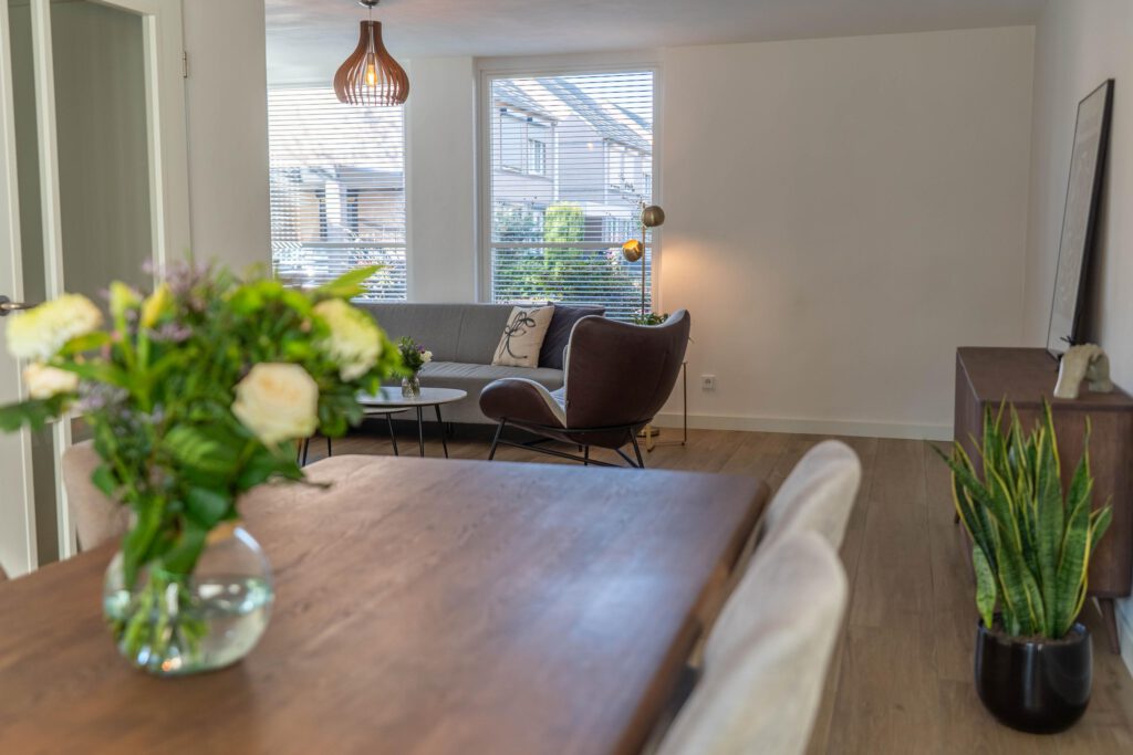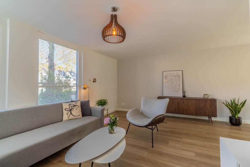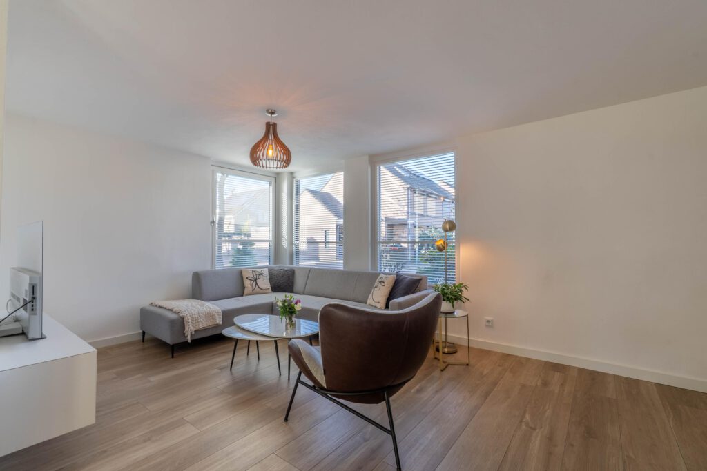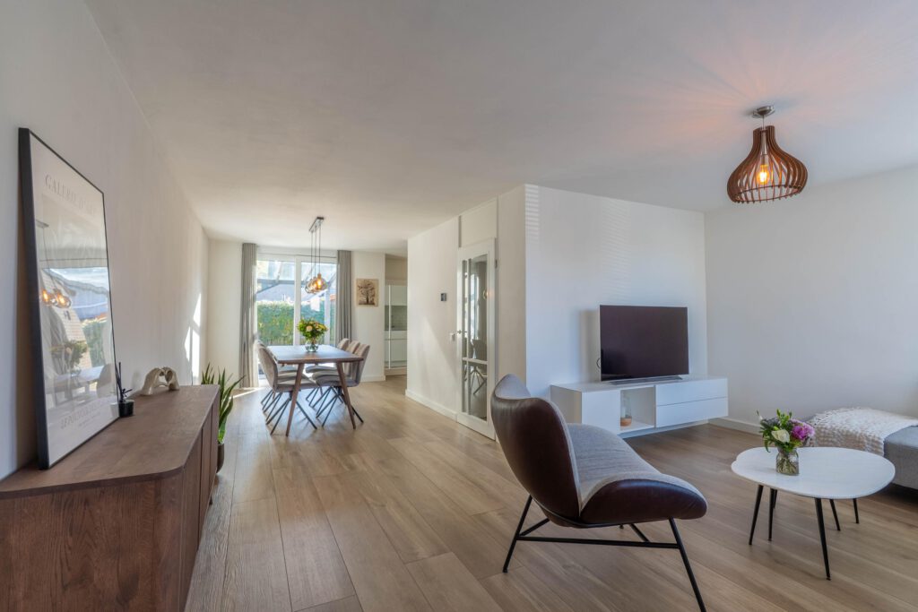 – Lichte woonkamer met schuifpui naar de tuin