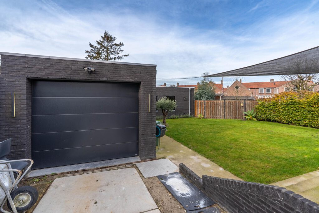 Voor het huis ligt een ruime oprit met plek voor meerdere auto’s. Via de elektrische poort heb je toegang tot de garage en de achtertuin. De garage is royaal opgezet en biedt volop ruimte voor een auto, fietsen of opslag. Bovendien is er een kantoorruimte, aparte keuken en toilet aanwezig, ideaal voor wie thuis wil werken of gasten ontvangt. De keuken is voorzien van een kookplaat en oven, en er hangt zelfs een nieuwe airco (nog in folie).