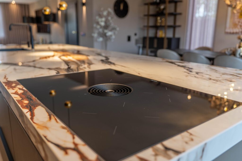 Luxe leefkeuken met kookeiland en topapparatuur