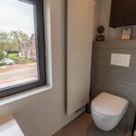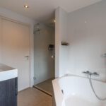 Daarnaast is er een aparte wasruimte en een moderne badkamer met inloopdouche, ligbad, toilet en dubbele wastafel. Alles in een luxe, eigentijdse stijl.