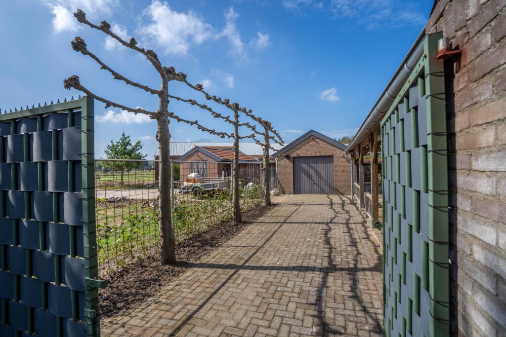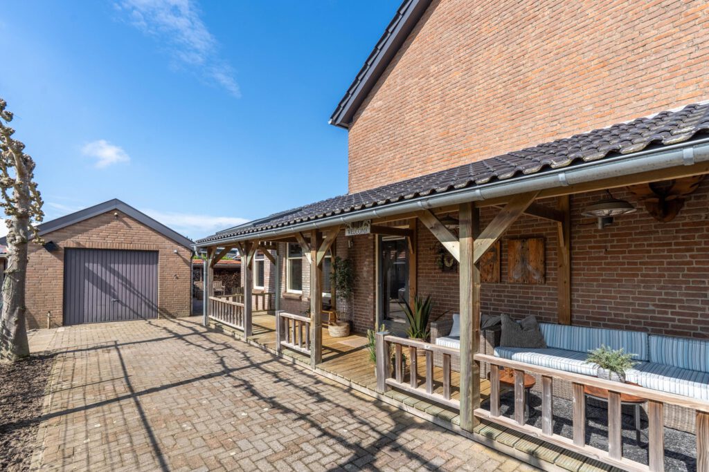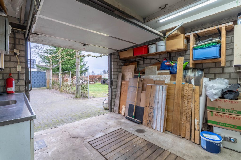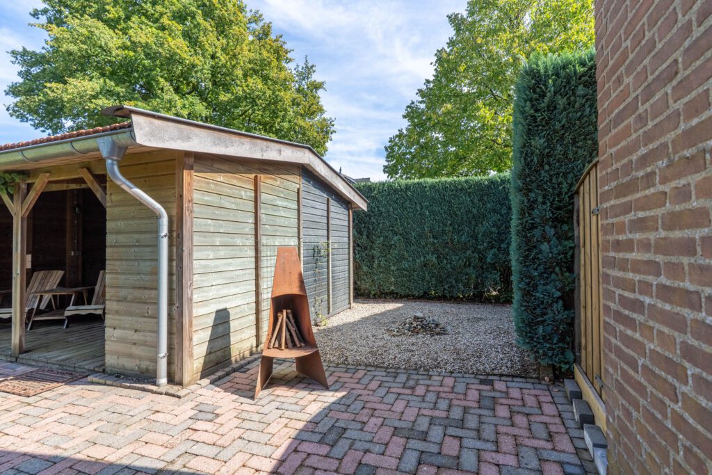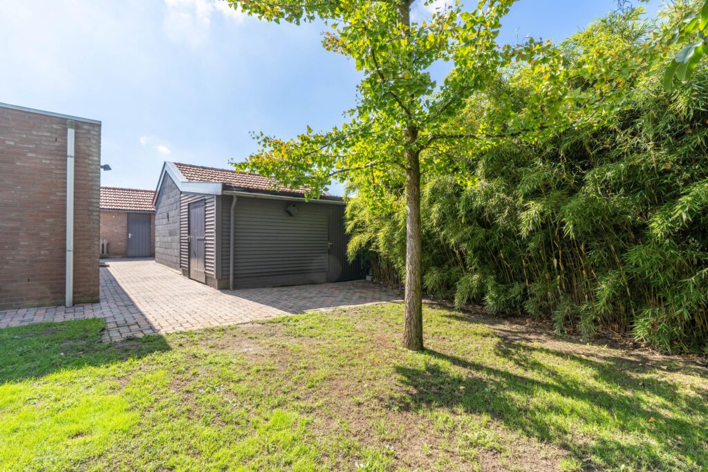 Via een dubbele poort aan de linkerzijde van de woning betreed je de ruime tuin. Aan deze zijde bevindt zich ook een grote overkapping, waar je heerlijk overdekt kunt genieten van het buitenleven. Er is voldoende ruimte om de auto achter de poort te parkeren of deze in de garage te zetten. De garage is ruim opgezet en biedt volop mogelijkheden voor opslag of het uitoefenen van hobby’s. Daarnaast zijn er nog meerdere bergingen aanwezig, waardoor het aan opbergruimte zeker niet ontbreekt. In de tuin vind je bovendien verschillende zitplekken, een groen gedeelte en een tuinhuisje met berging en overkapping. Tijdens een bezichtiging ontdek je pas echt hoeveel ruimte deze woning en tuin te bieden hebben.