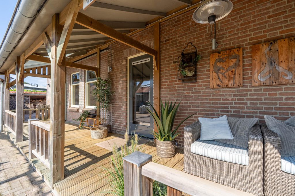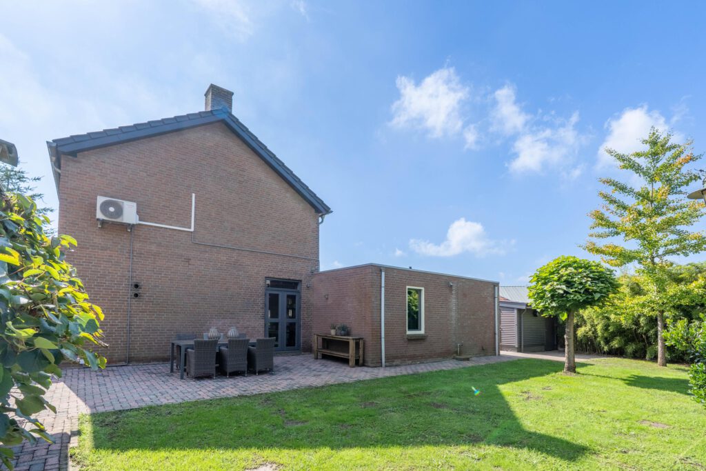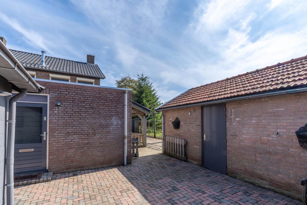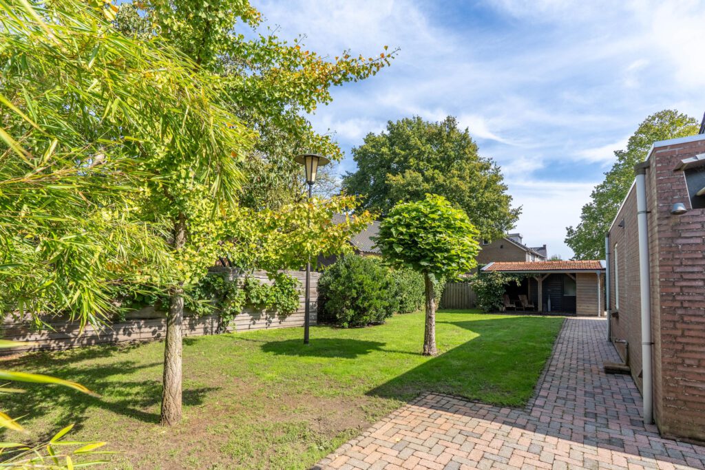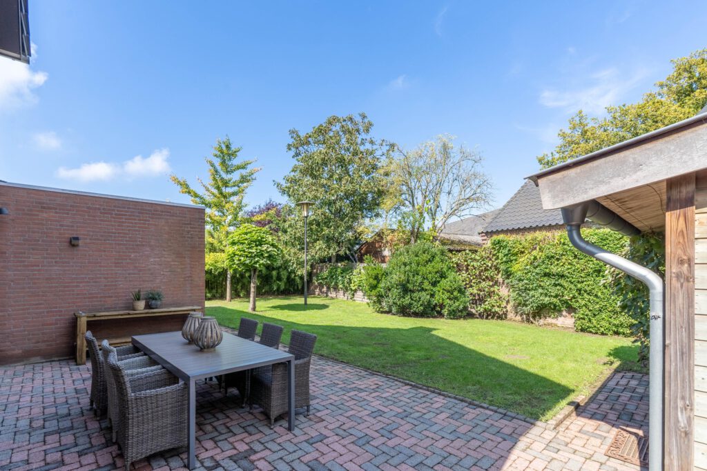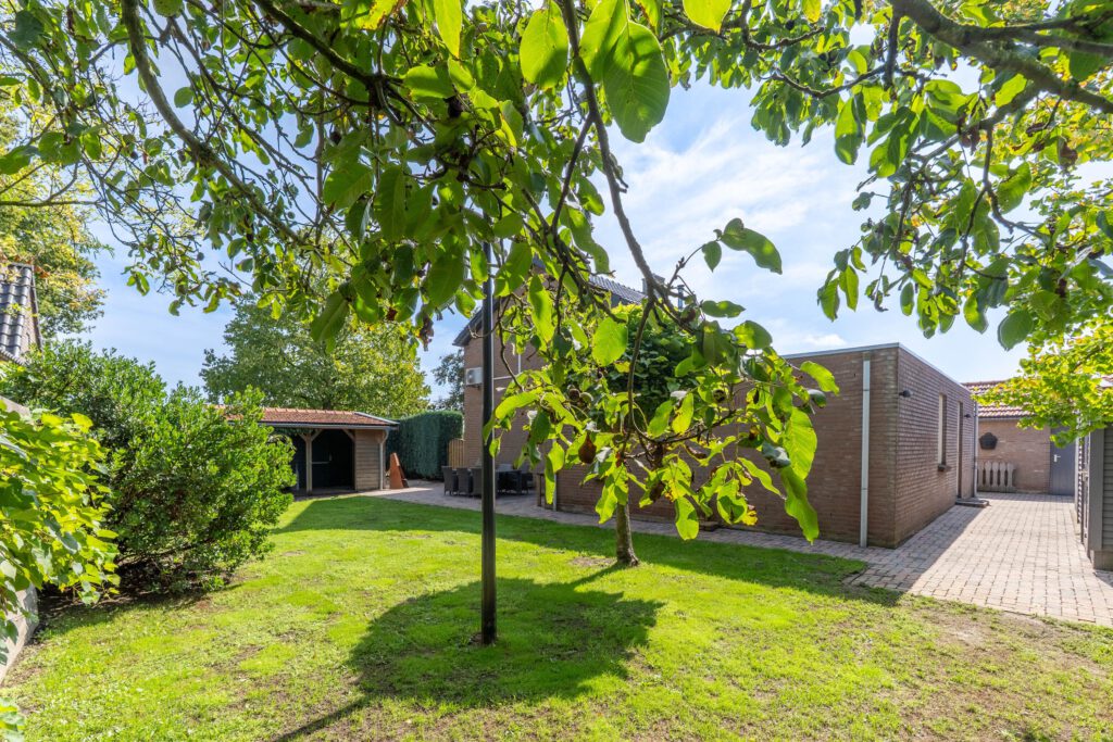 Via een dubbele poort aan de linkerzijde van de woning betreed je de ruime tuin. Aan deze zijde bevindt zich ook een grote overkapping, waar je heerlijk overdekt kunt genieten van het buitenleven. Er is voldoende ruimte om de auto achter de poort te parkeren of deze in de garage te zetten. De garage is ruim opgezet en biedt volop mogelijkheden voor opslag of het uitoefenen van hobby’s. Daarnaast zijn er nog meerdere bergingen aanwezig, waardoor het aan opbergruimte zeker niet ontbreekt. In de tuin vind je bovendien verschillende zitplekken, een groen gedeelte en een tuinhuisje met berging en overkapping. Tijdens een bezichtiging ontdek je pas echt hoeveel ruimte deze woning en tuin te bieden hebben.