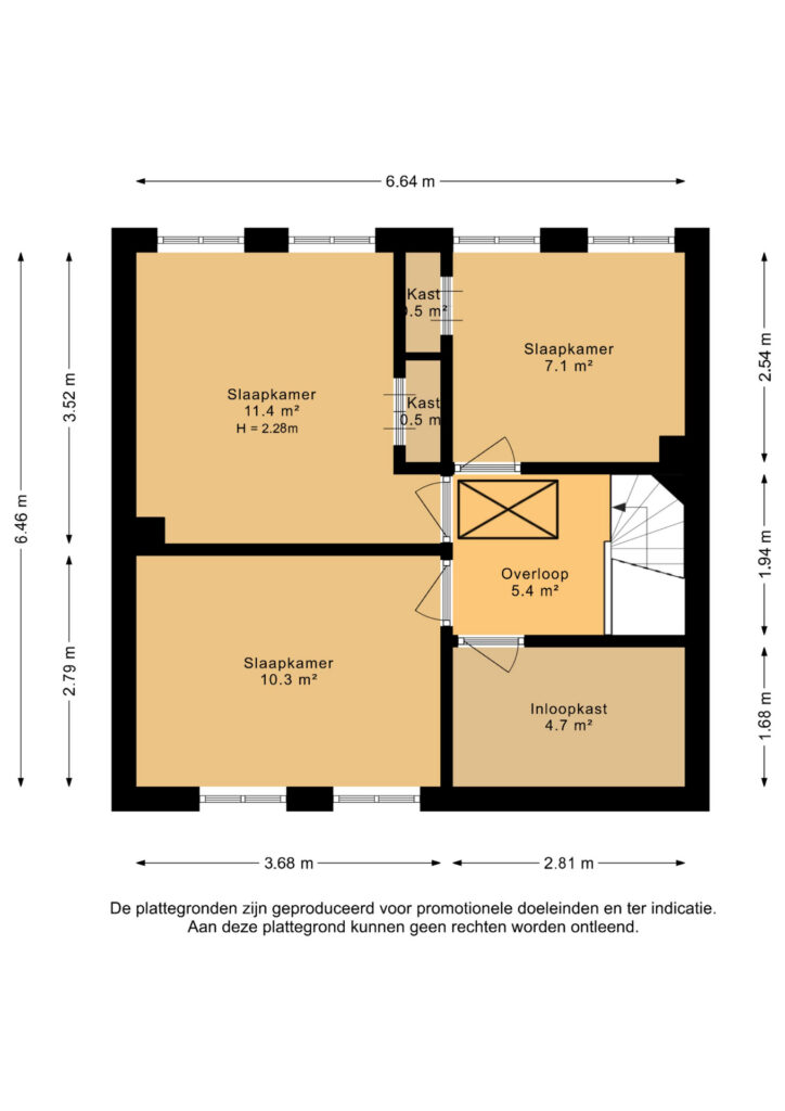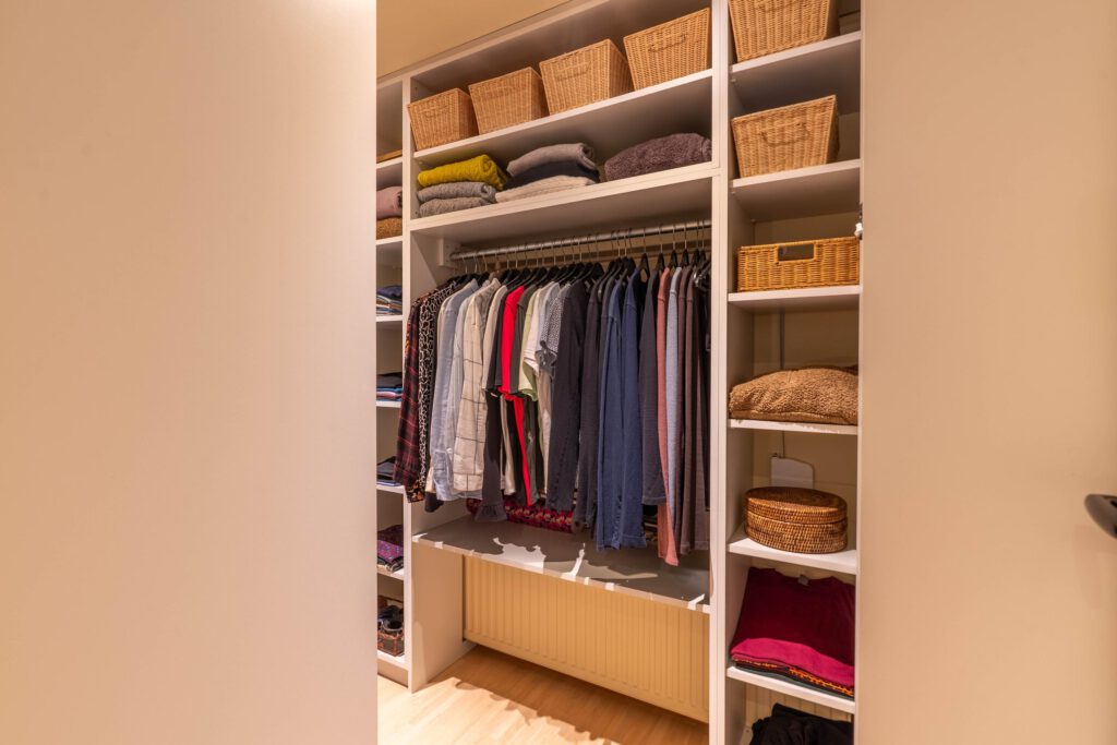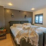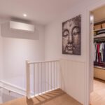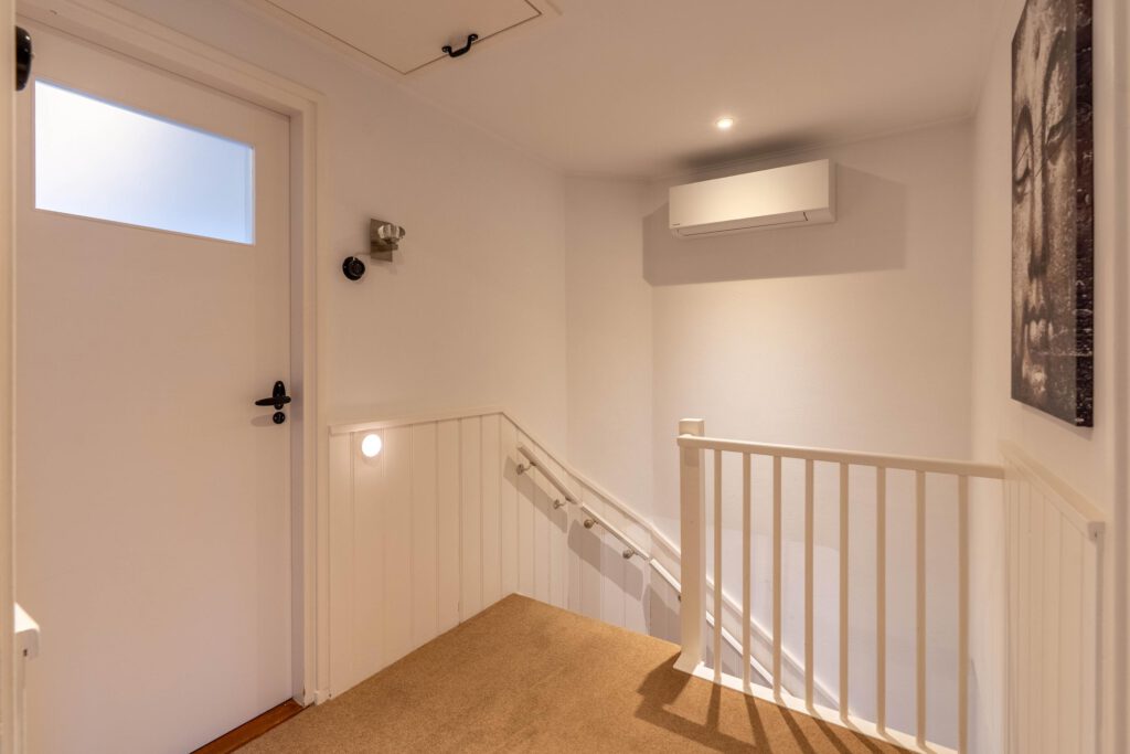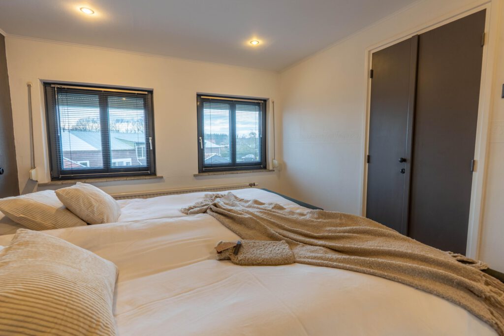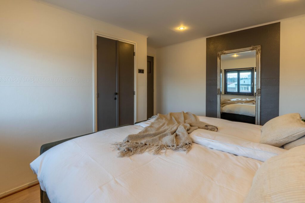 Op de eerste verdieping bevinden zich drie slaapkamers. Alle slaapkamers zijn ruim genoeg voor een tweepersoonsbed en twee kamers beschikken over een ingebouwde kast. Via de overloop is er toegang tot een inloopkast. Boven de trap hangt een airco die zorgt voor verkoeling tijdens warme zomerdagen. Voor extra bergruimte is er tevens een vliering aanwezig.