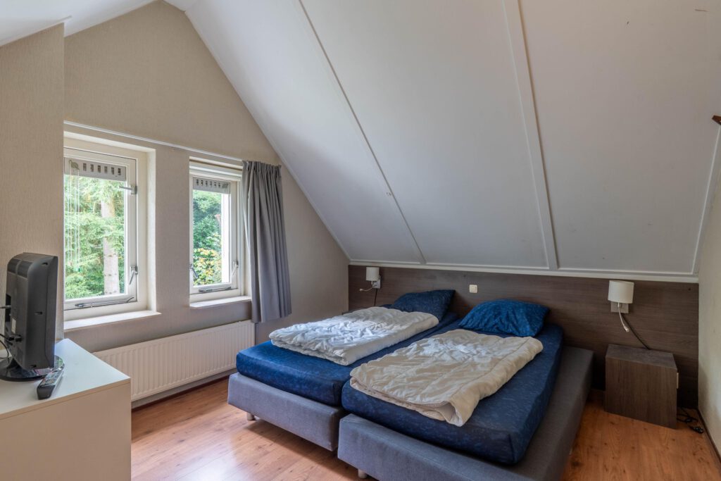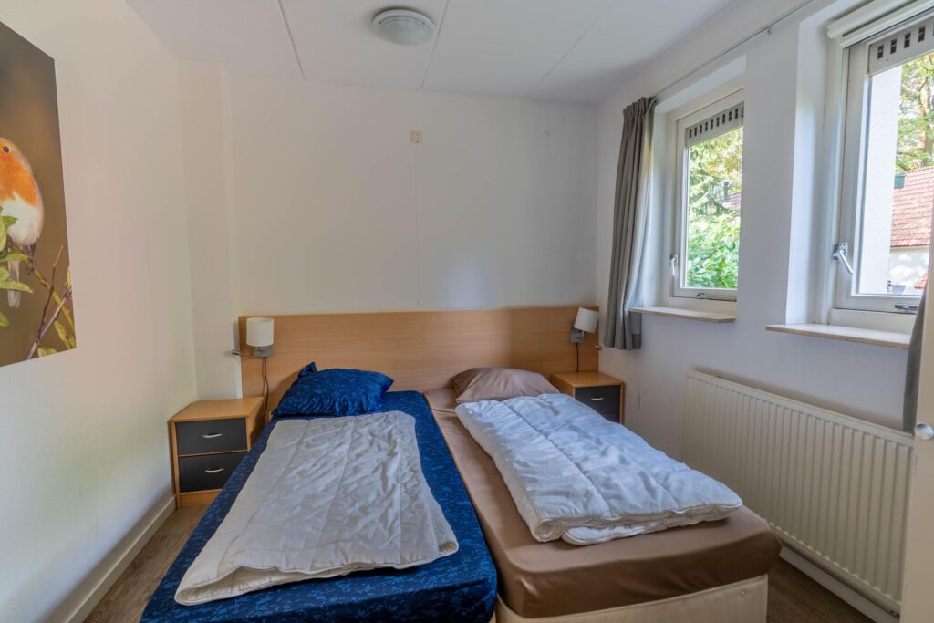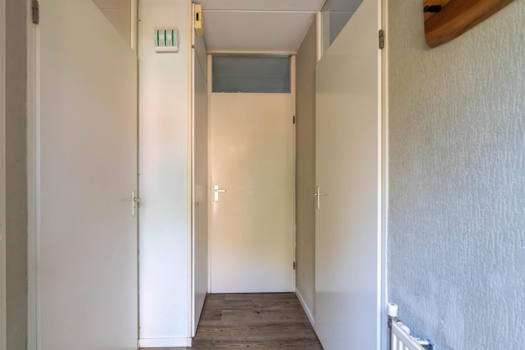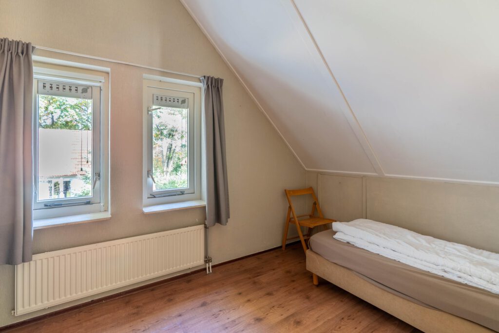 deze woning is de slaapkamer op de begane grond, die ook via de centrale gang te bereiken is.
