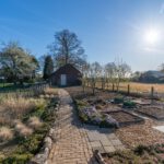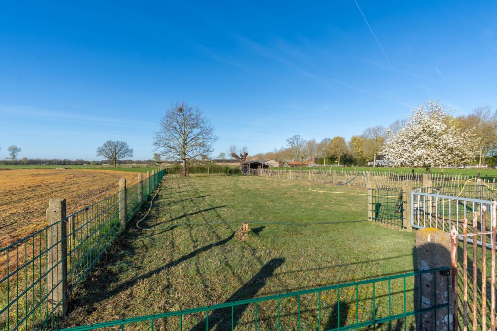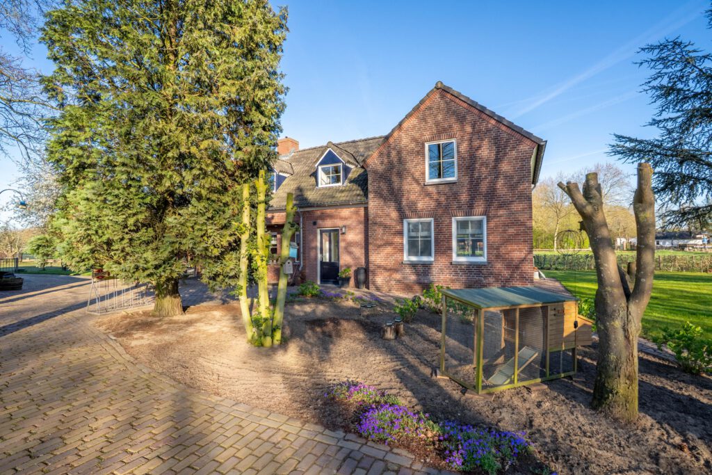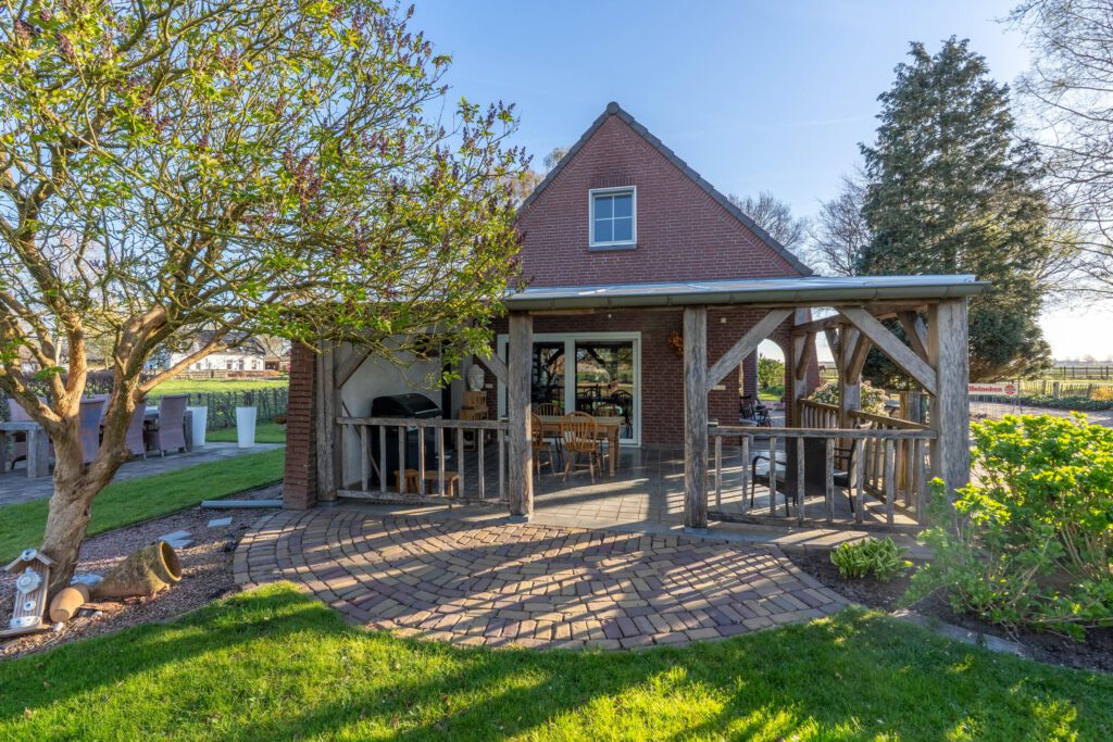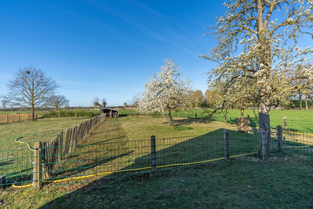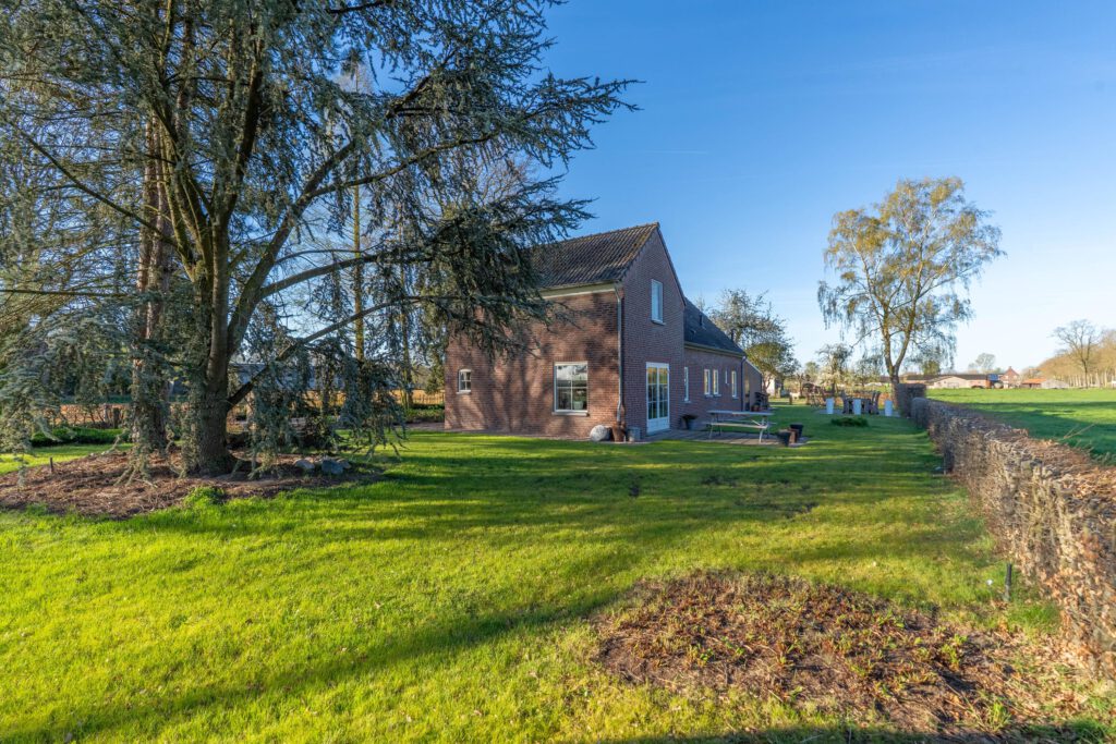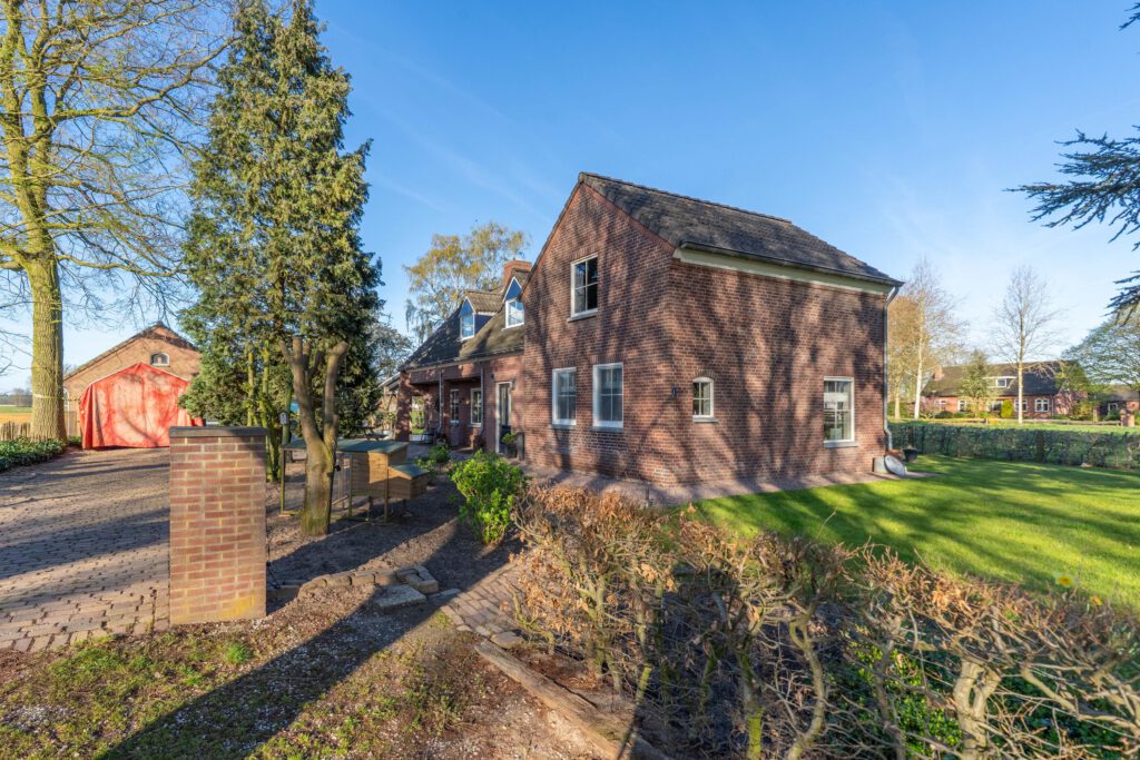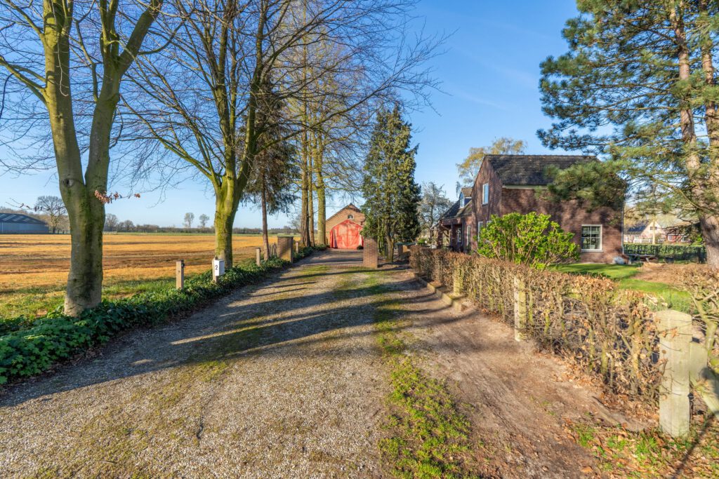 Via de grote oprit betreed je het perceel, met de woning centraal gelegen op het land. Hierdoor geniet je van een tuin rondom het huis en altijd een gevoel van ruimte en privacy. De tuin nodigt uit om elk seizoen buiten te leven – of je nu ontspant onder de overkapping aan de achterzijde van de woning, geniet van de zon op één van de vele zitplekken of bezig bent in je eigen moestuin.