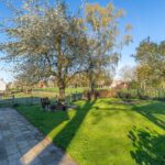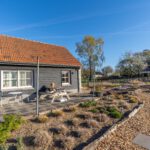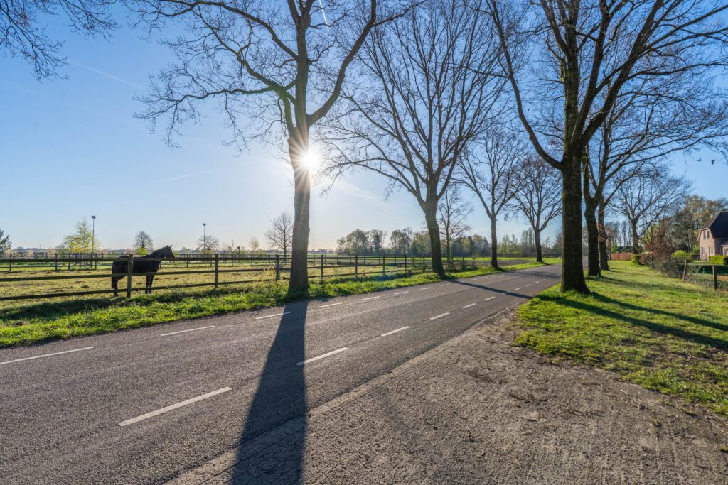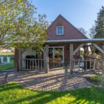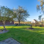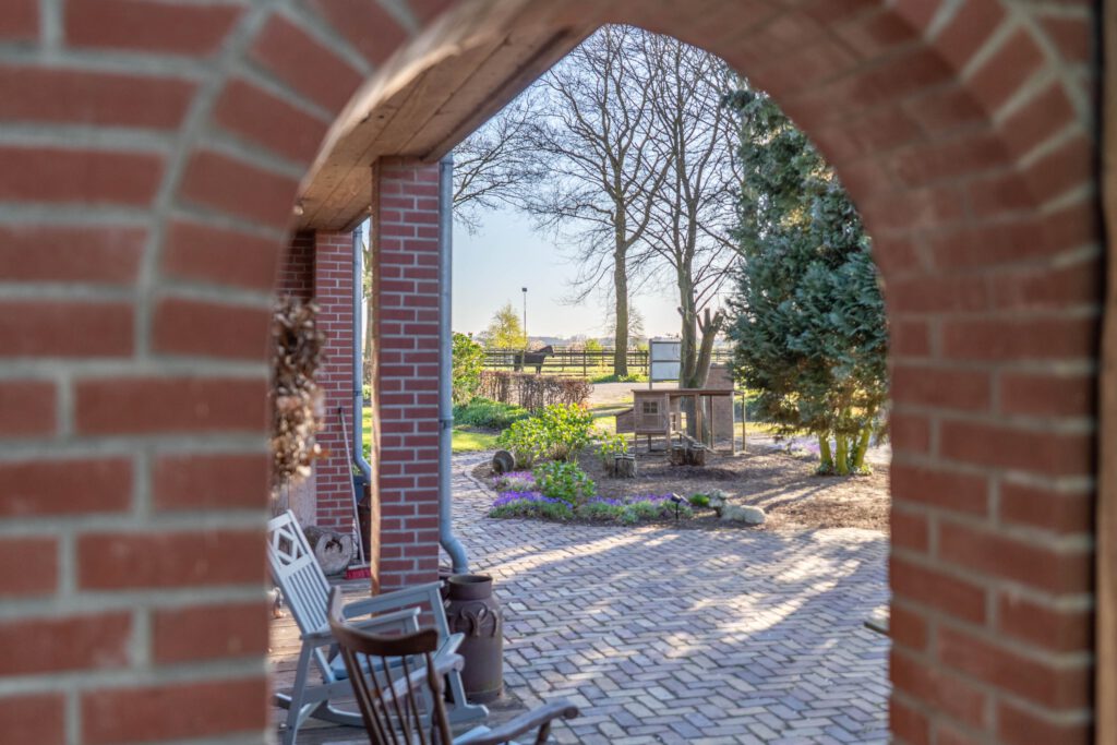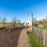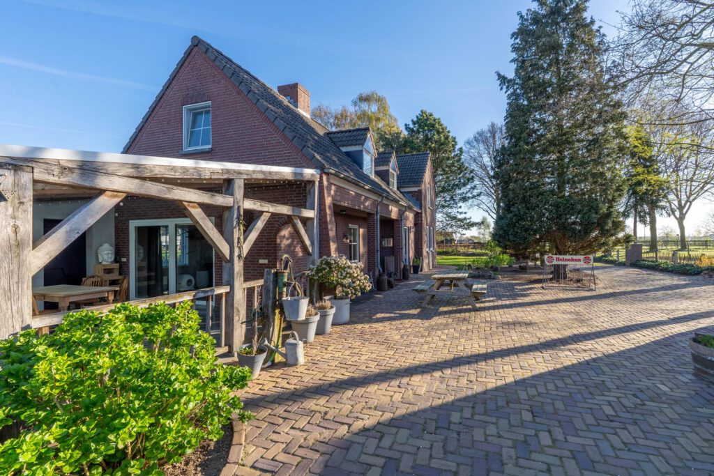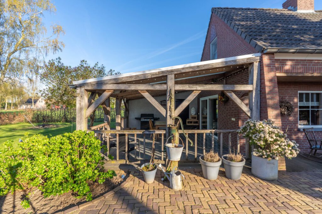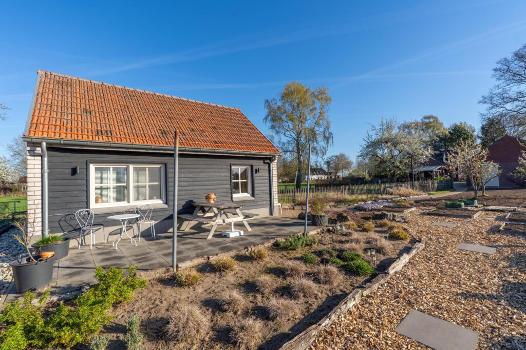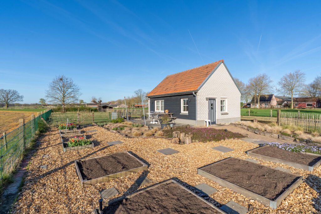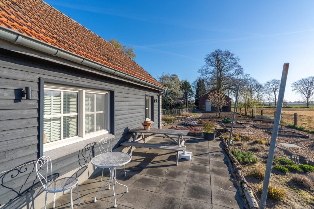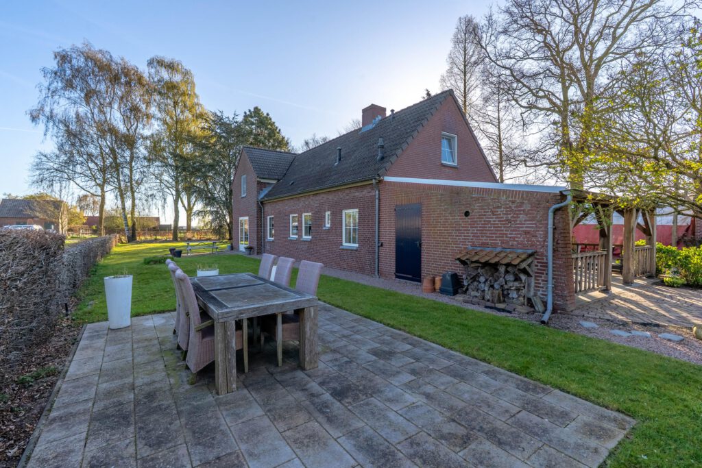 Via de grote oprit betreed je het perceel, met de woning centraal gelegen op het land. Hierdoor geniet je van een tuin rondom het huis en altijd een gevoel van ruimte en privacy. De tuin nodigt uit om elk seizoen buiten te leven – of je nu ontspant onder de overkapping aan de achterzijde van de woning, geniet van de zon op één van de vele zitplekken of bezig bent in je eigen moestuin.