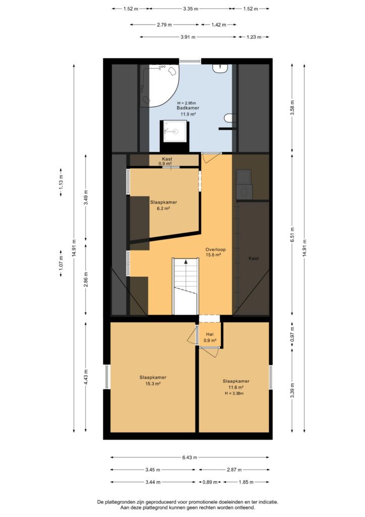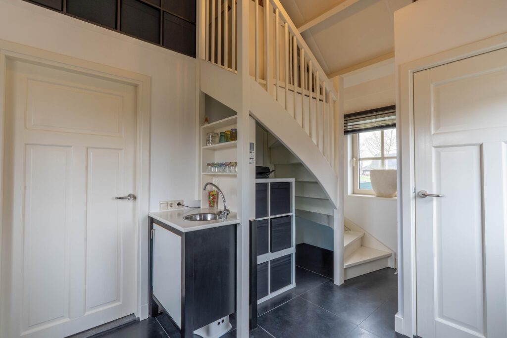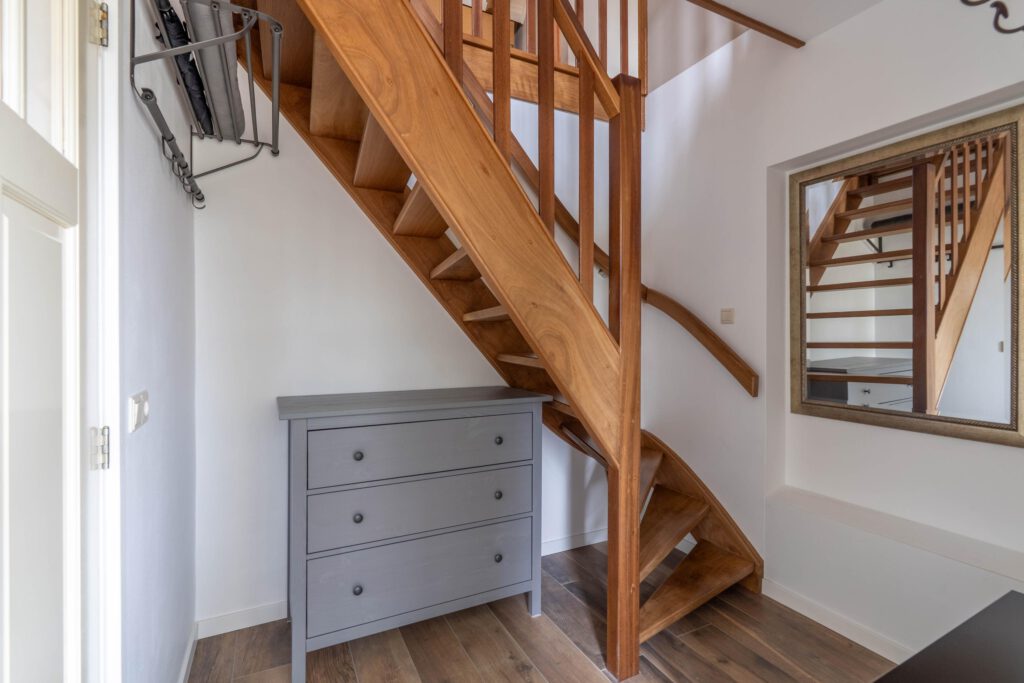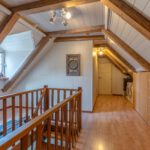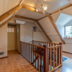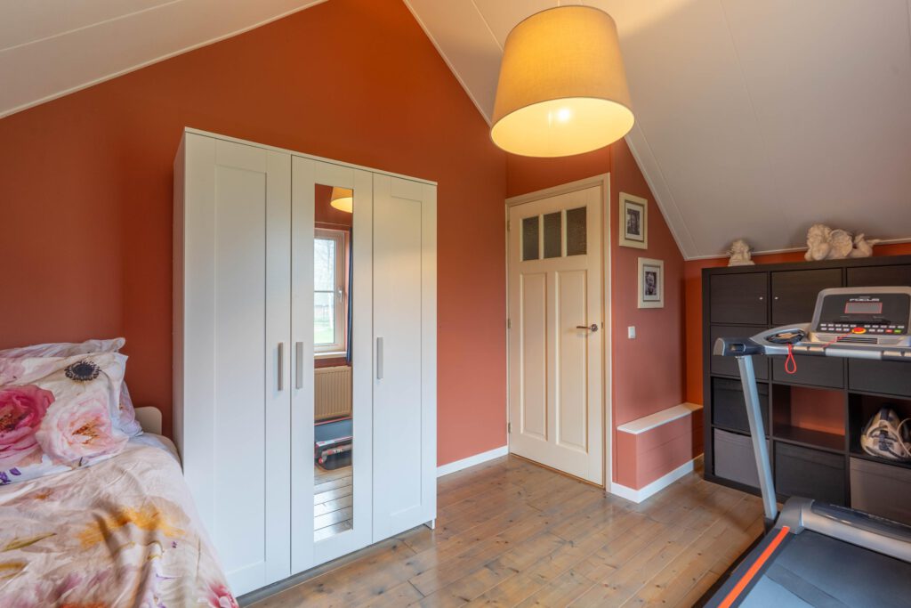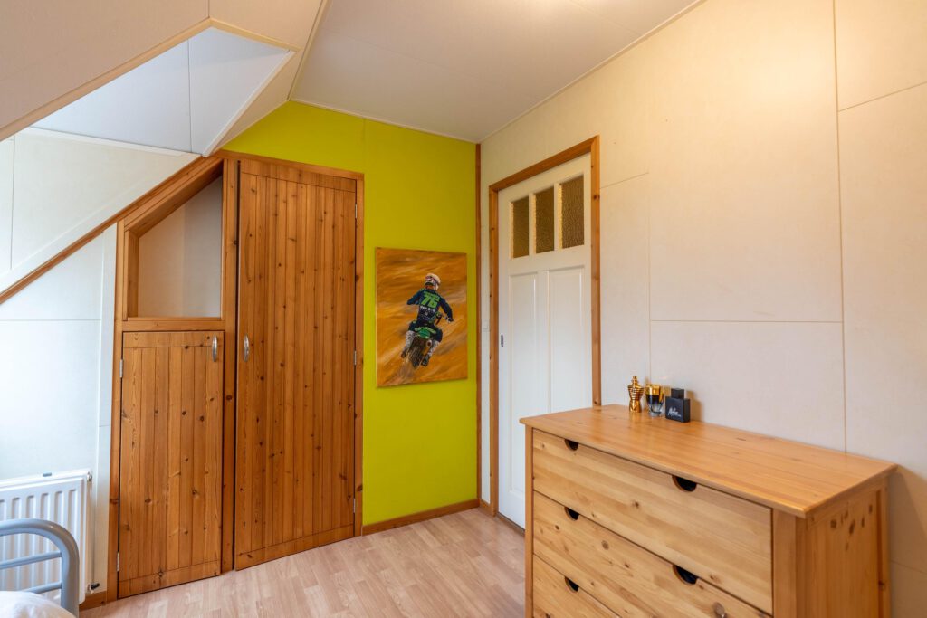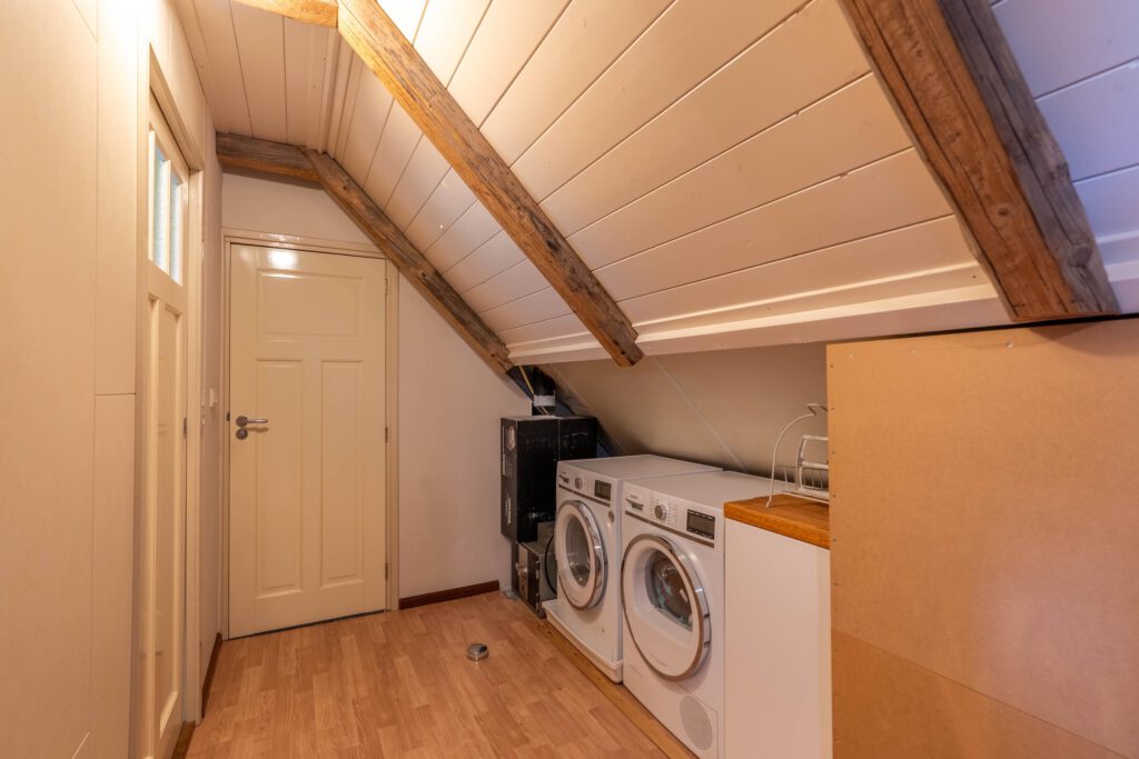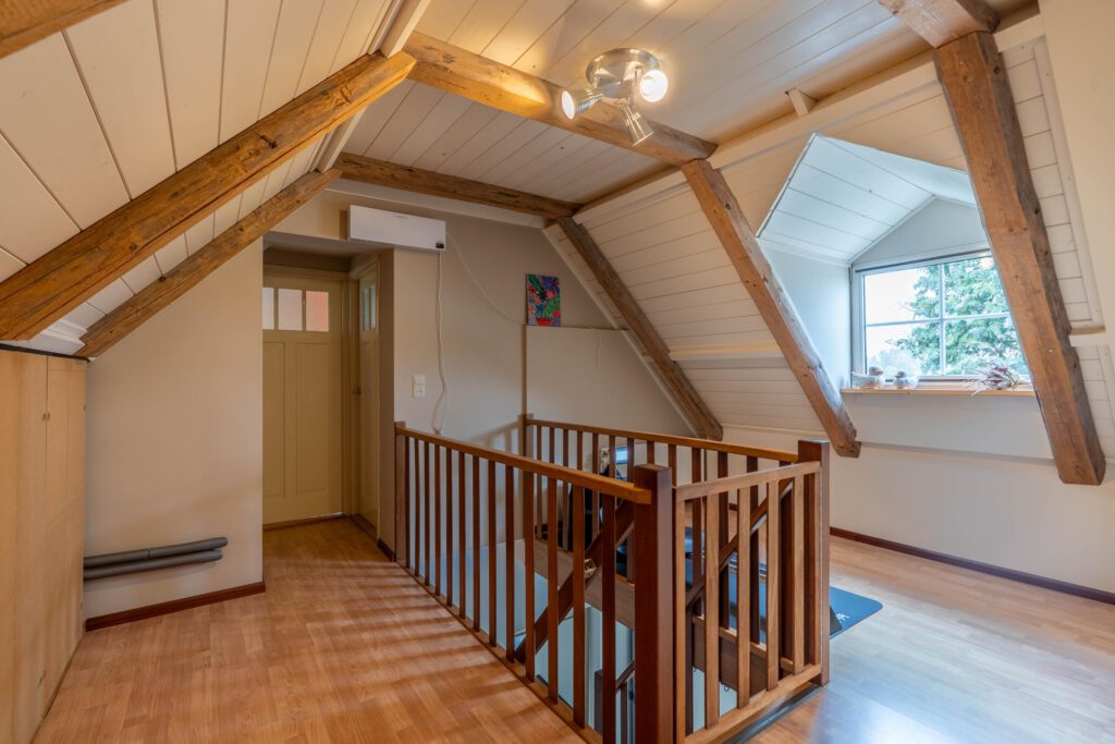 Op de eerste verdieping bevindt zich een ruime overloop, die toegang biedt tot drie slaapkamers. Dankzij het schuine dak is slim gebruikgemaakt van de ruimte en is er extra bergruimte gecreëerd. Op de overloop zijn tevens de witgoedaansluitingen gesitueerd.
