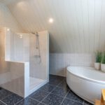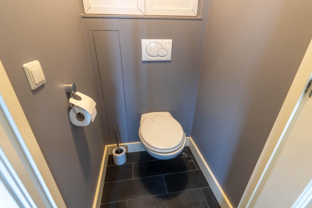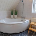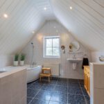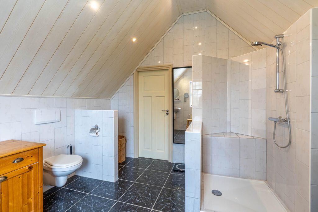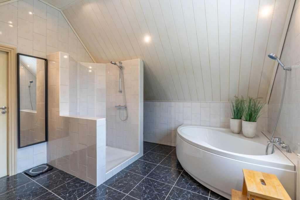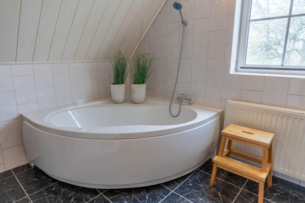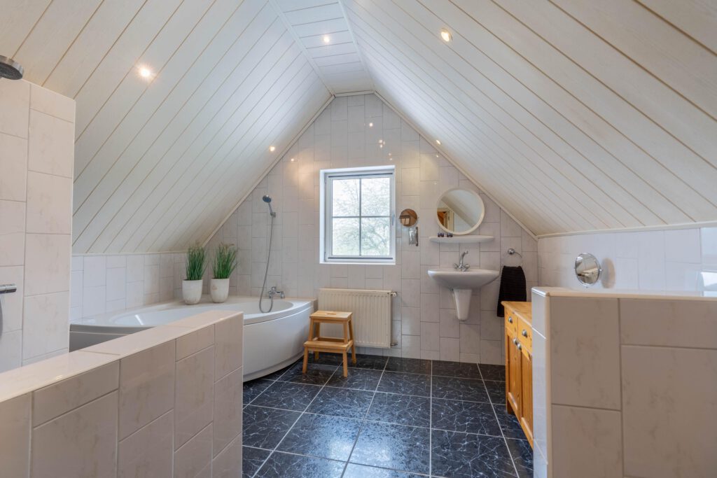 De badkamer is royaal en compleet uitgevoerd met een ligbad, douche, wastafel en toilet, alles wat je nodig hebt voor comfortabel dagelijks gebruik.