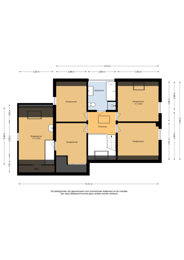 De overloop met dakraam zorgt voor veel lichtinval en geeft toegang tot vier slaapkamers. Alle kamers zijn netjes afgewerkt, met extra bergruimte via een handig tussenportaaltje. De badkamer is royaal van opzet en praktisch ingedeeld, voorzien van een ligbad, aparte douche, toilet en wastafelmeubel. Dankzij de grote raampartijen valt er ook hier volop daglicht binnen, wat de ruimte extra prettig maakt.